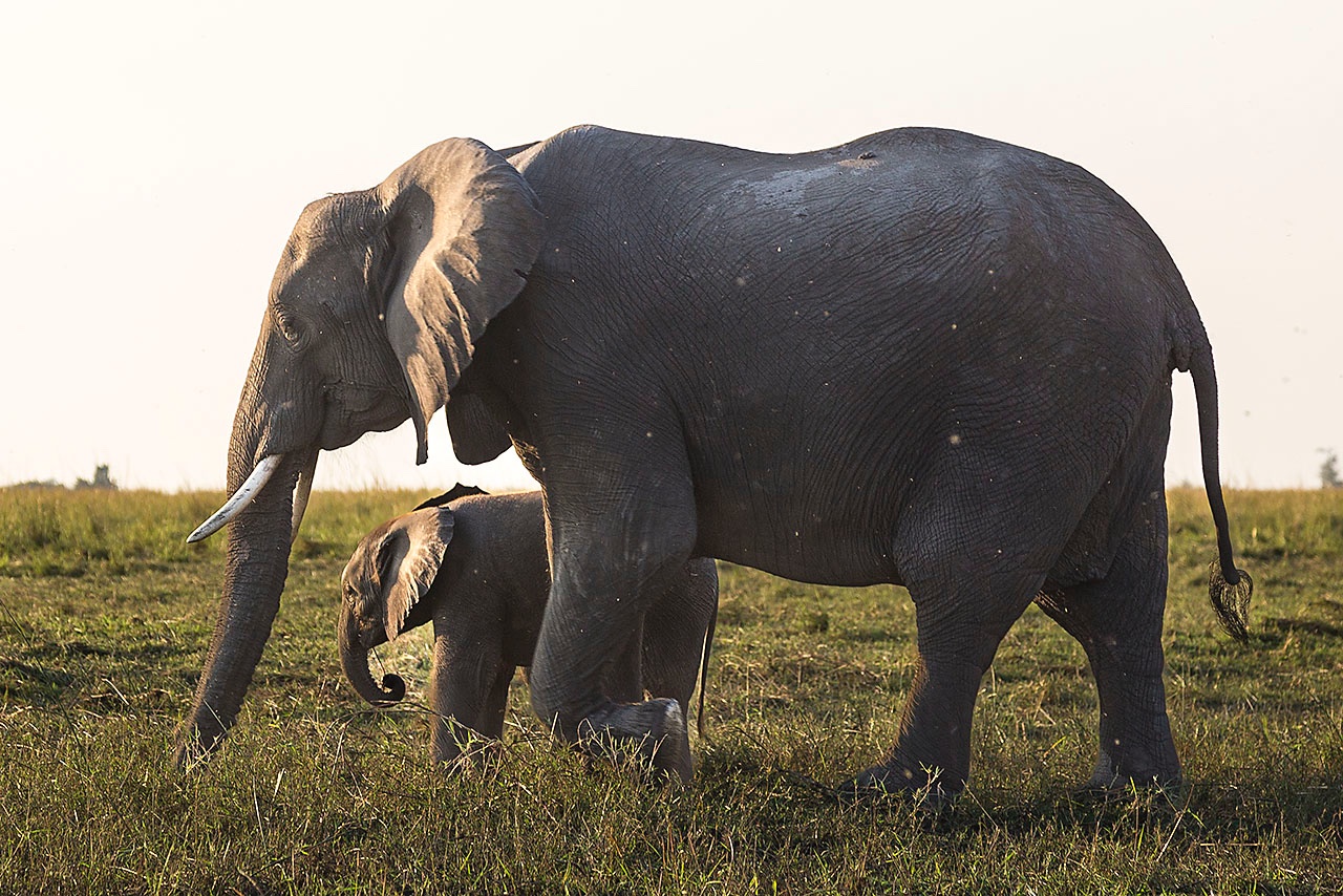 • Hippopotamous with elephants on the banks of the Chobe River, Chobe National Park