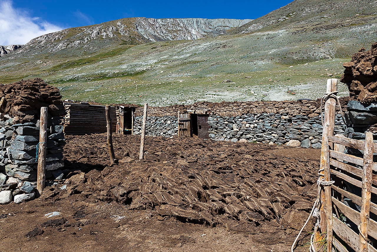 • Storing lot's of cow dung for the winter, Tavan Bogd National Park, Altai Mountains, Western Mongolia