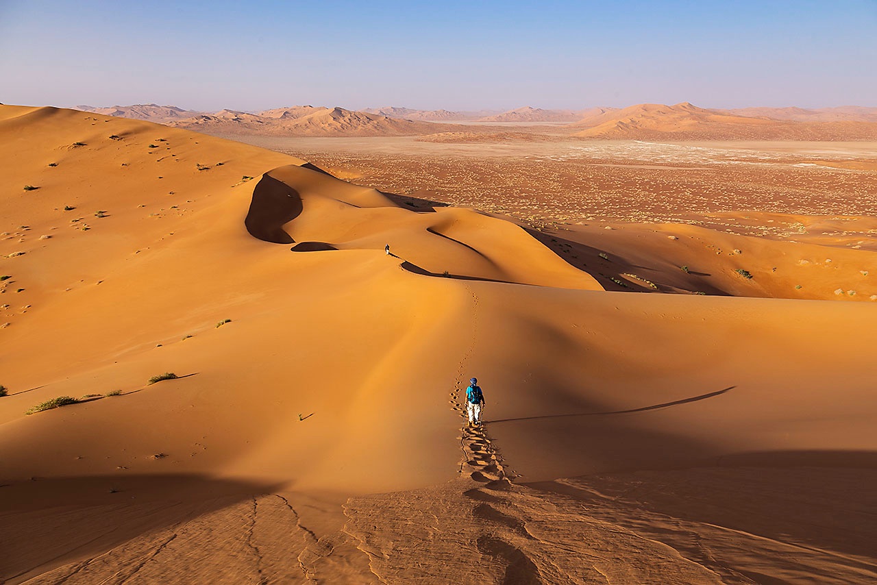 • Hiking in the sand dunes, desert landscape, Rub al Khali, Empty Quarter, Dhofar region