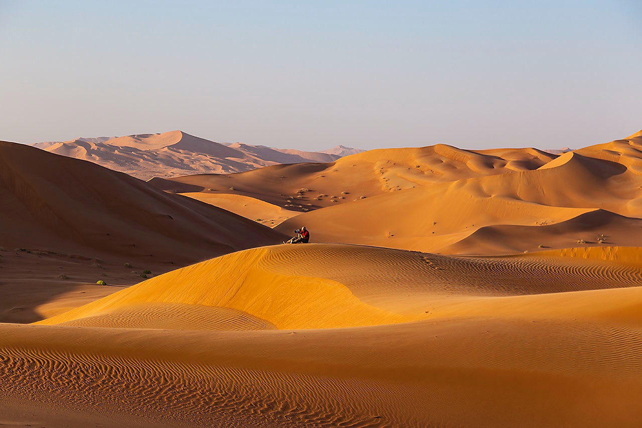 • Andreas taking pictures in the sand dunes, desert landscape, Rub al Khali, Empty Quarter, Dhofar region