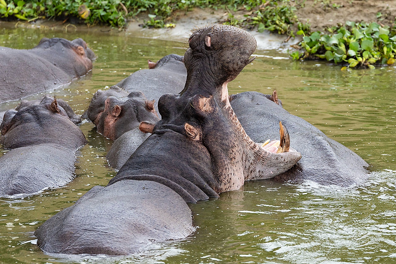 • Hippos (Hippopotamus Amphibius), Kazinga Channel, Queen Elizabeth National Park