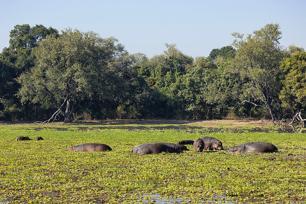 • Group of Hippos (Hippopotamus Amphibius), South Luangwa National Park