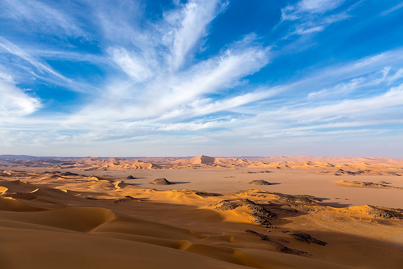 • Sand dunes and rocks of Moul Naga, Tadrart region, Tassili n' Ajjer National Park, Sahara, North Africa