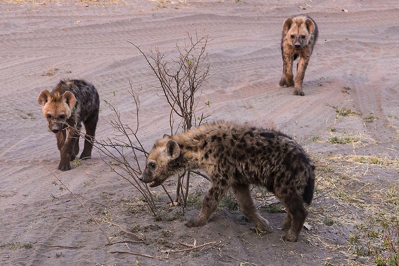 • Young Spotted Hyenas (Crocuta crocuta), Savuti region, Chobe National Park