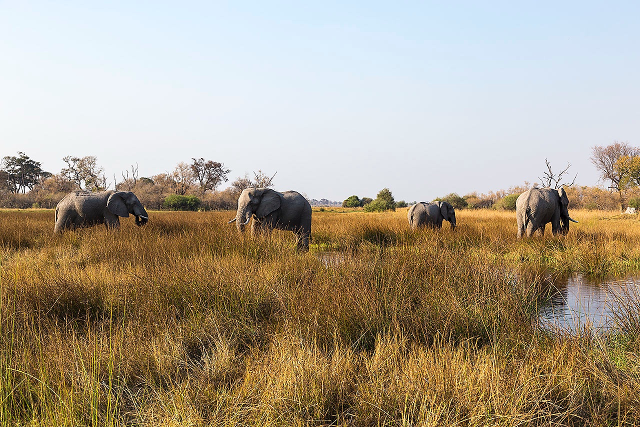 • Group of African Bush Elephants (Loxodonta africana), or African Savanna Elephants, Moremi Game Reserve