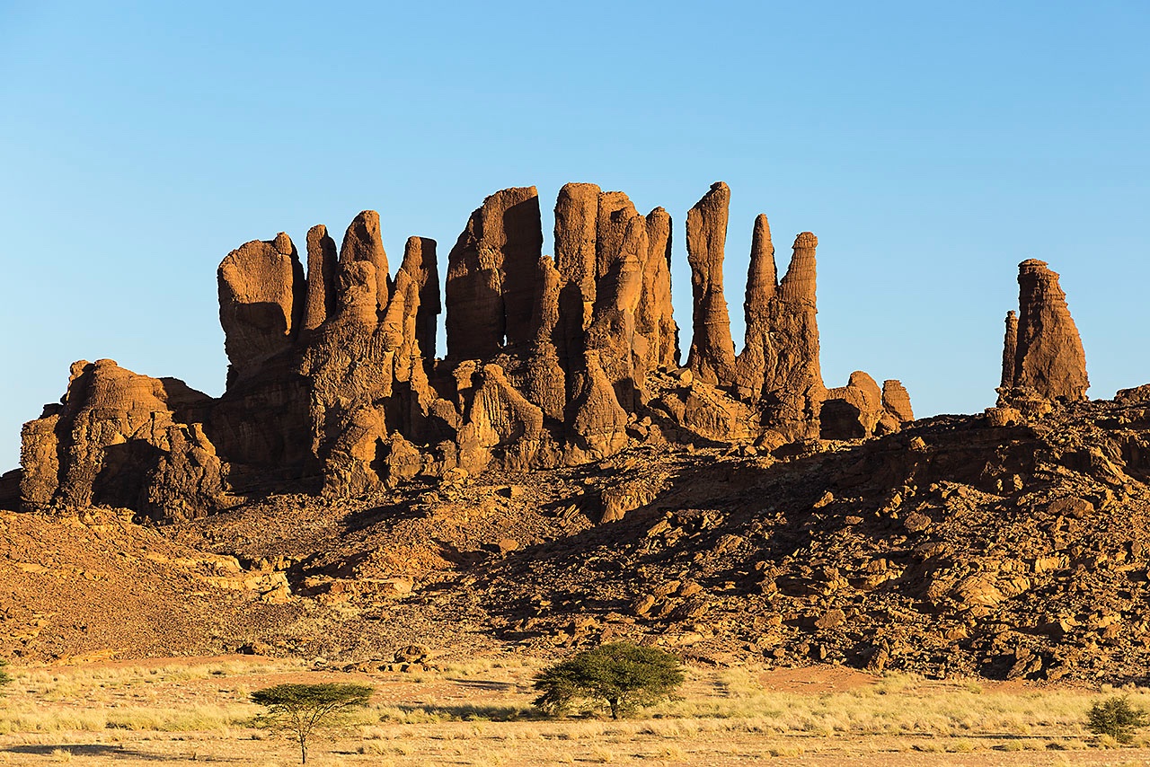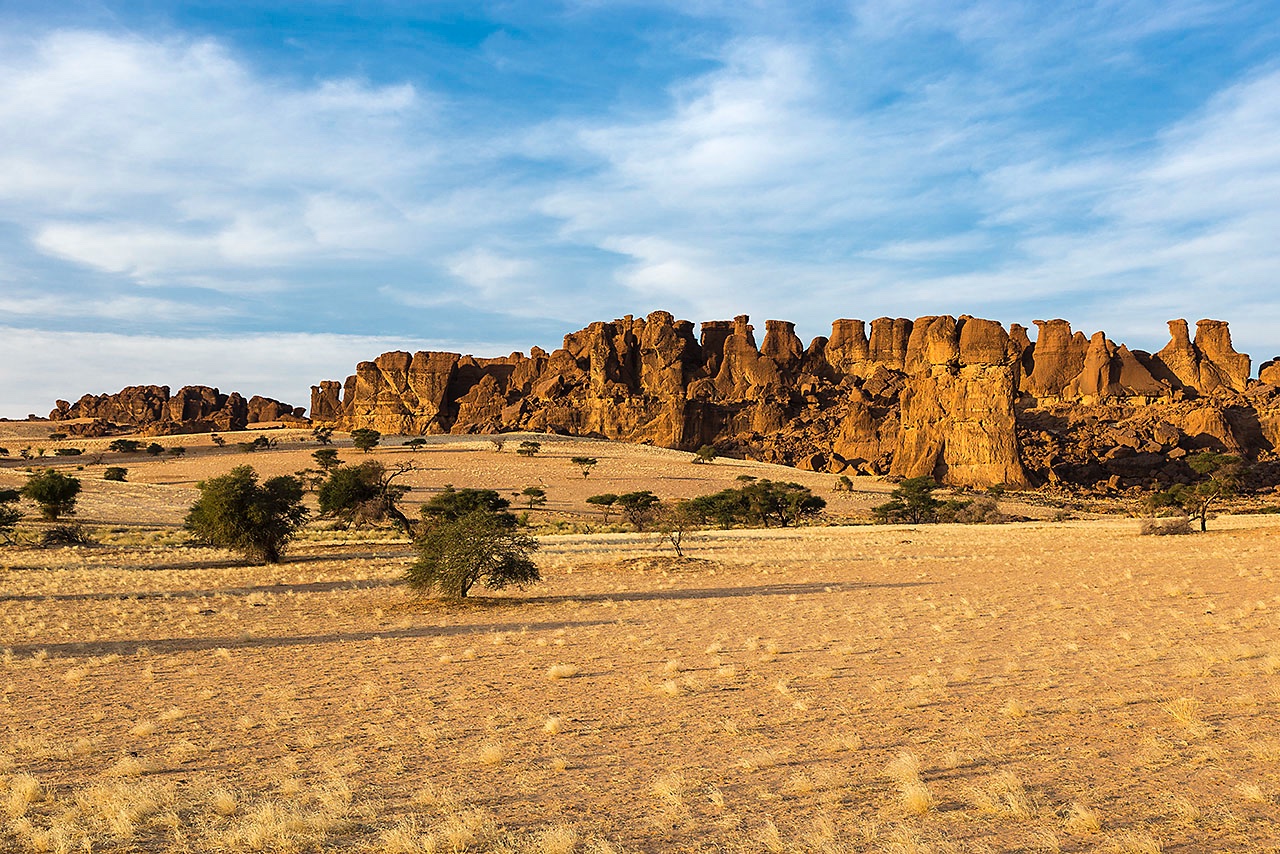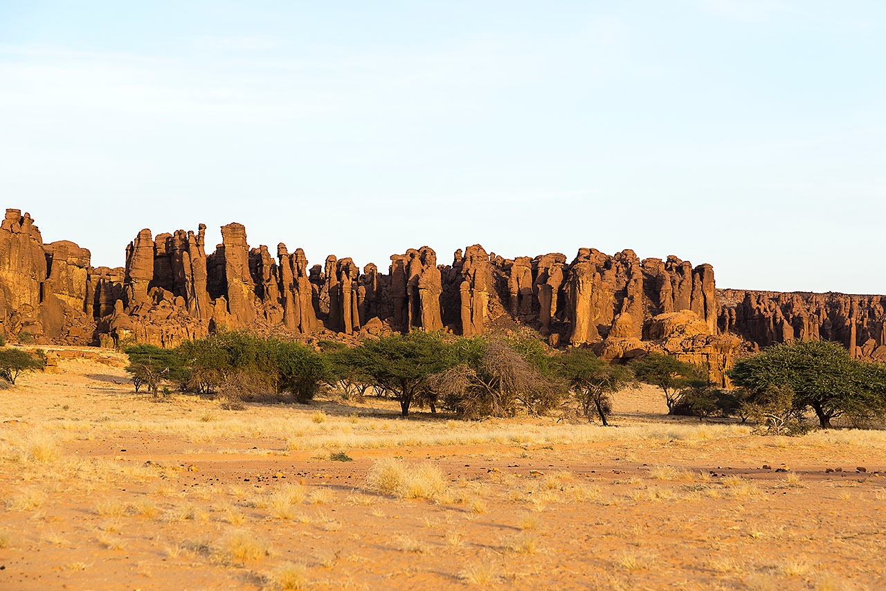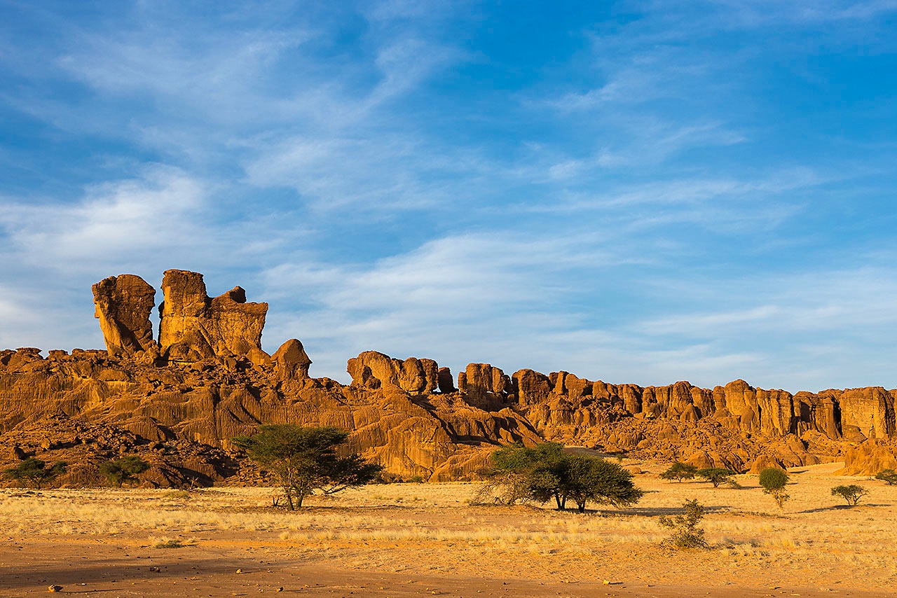 • Sandstone rock formations in late afetrnoon light, Ennedi Mountains, northeastern Chad