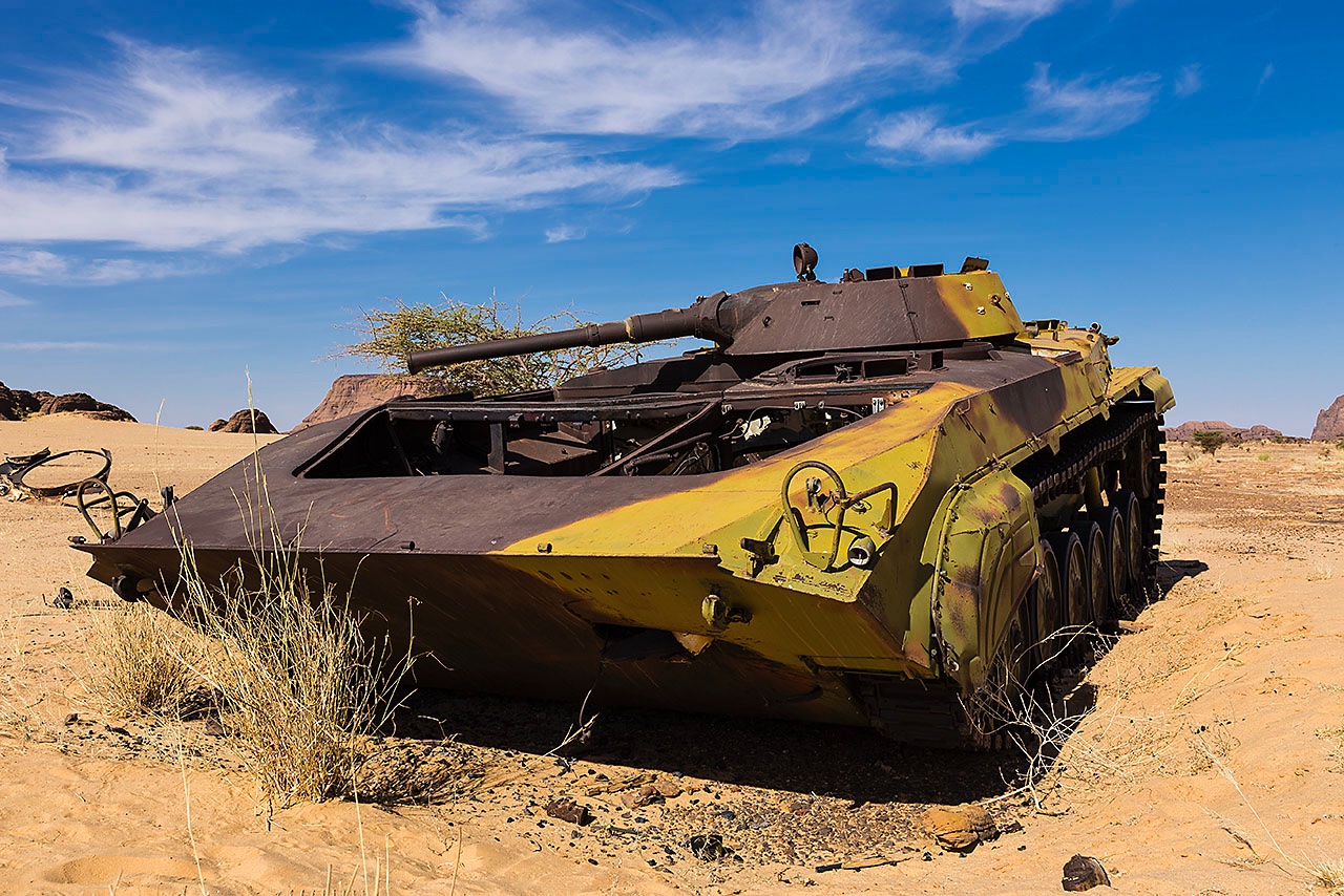 • Libyan tank wreck in the desert