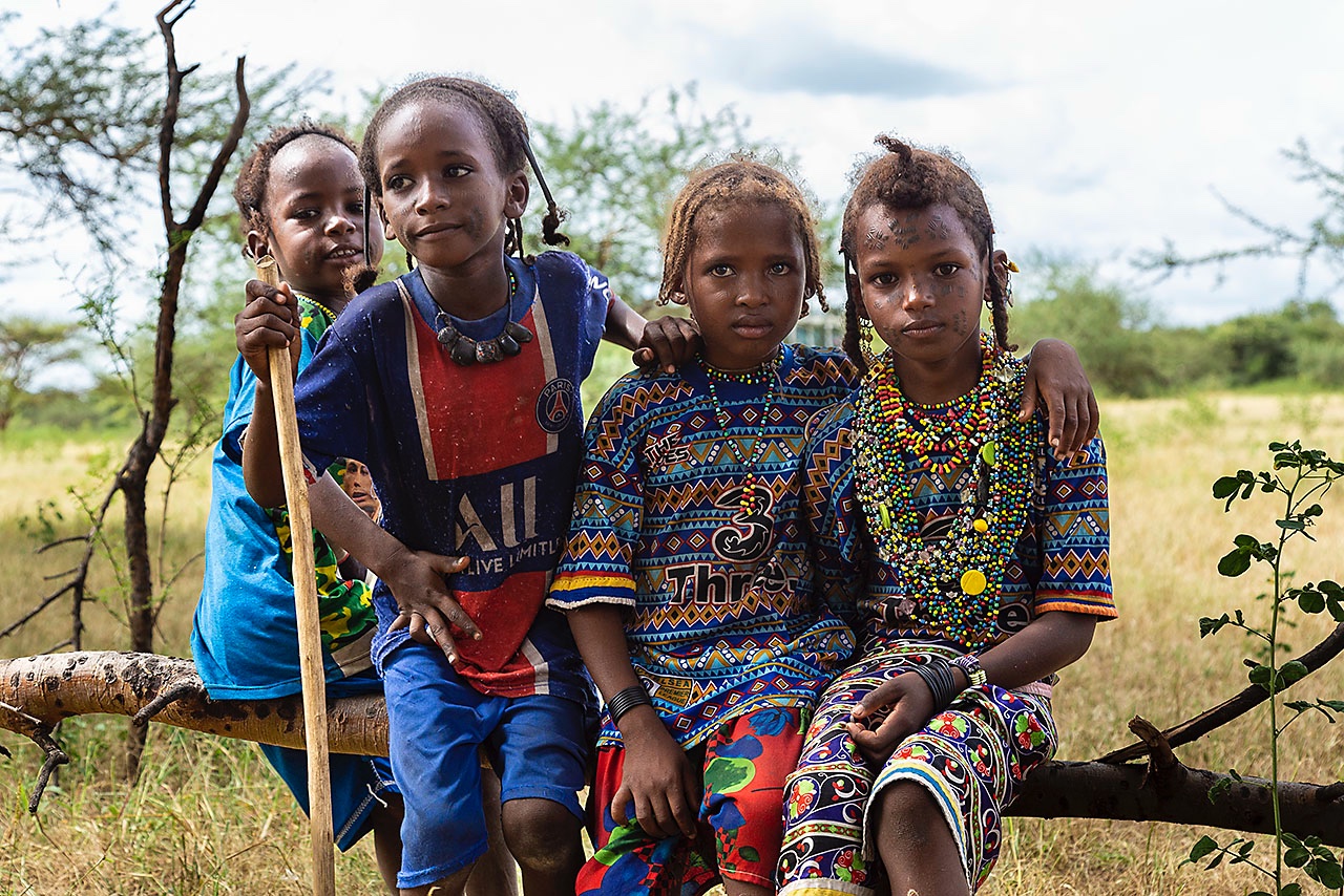 • Group of Wodaabe (Bororo) kids gather at our Gerewol festival campsite
