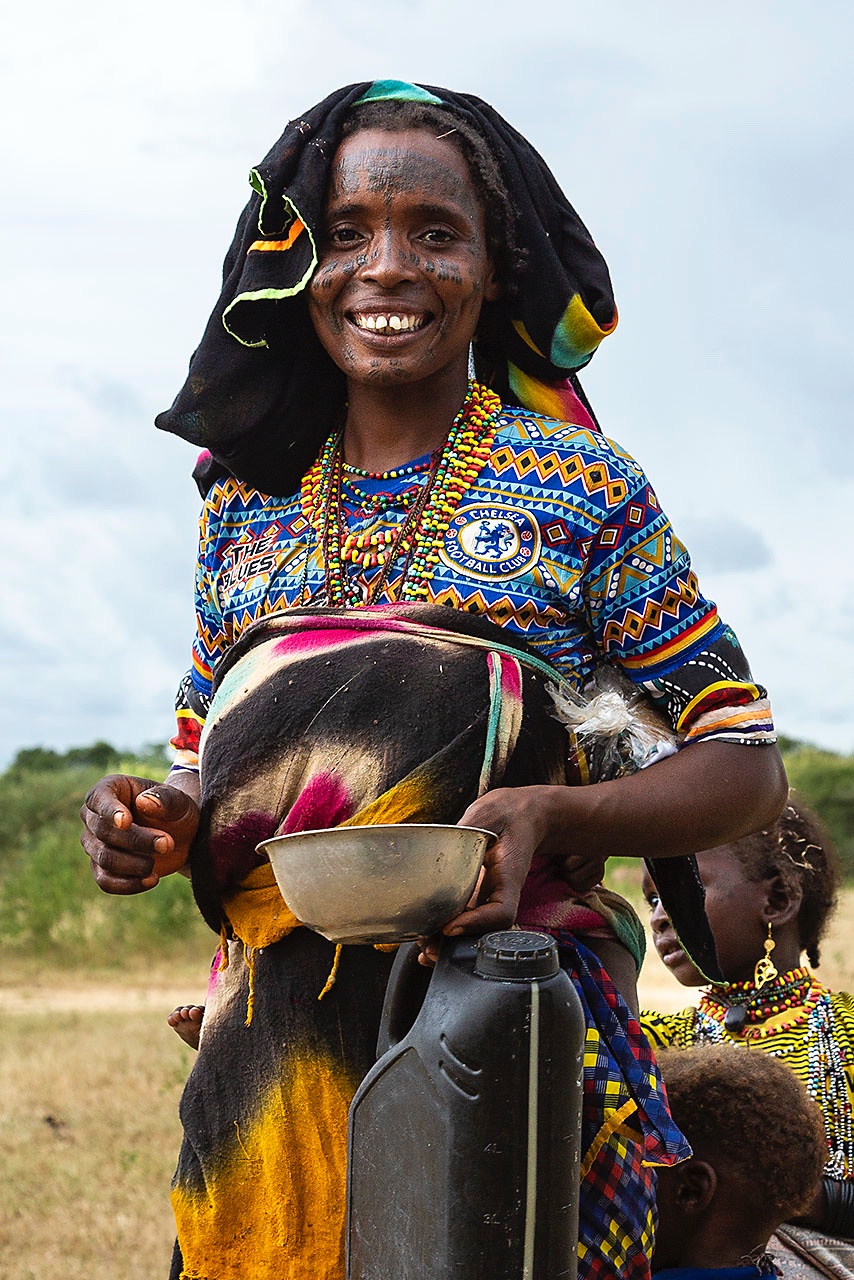 • Wodaabe (Bororo) woman at the Gerewol festival - her face richly 'decorated' with scar tattoos