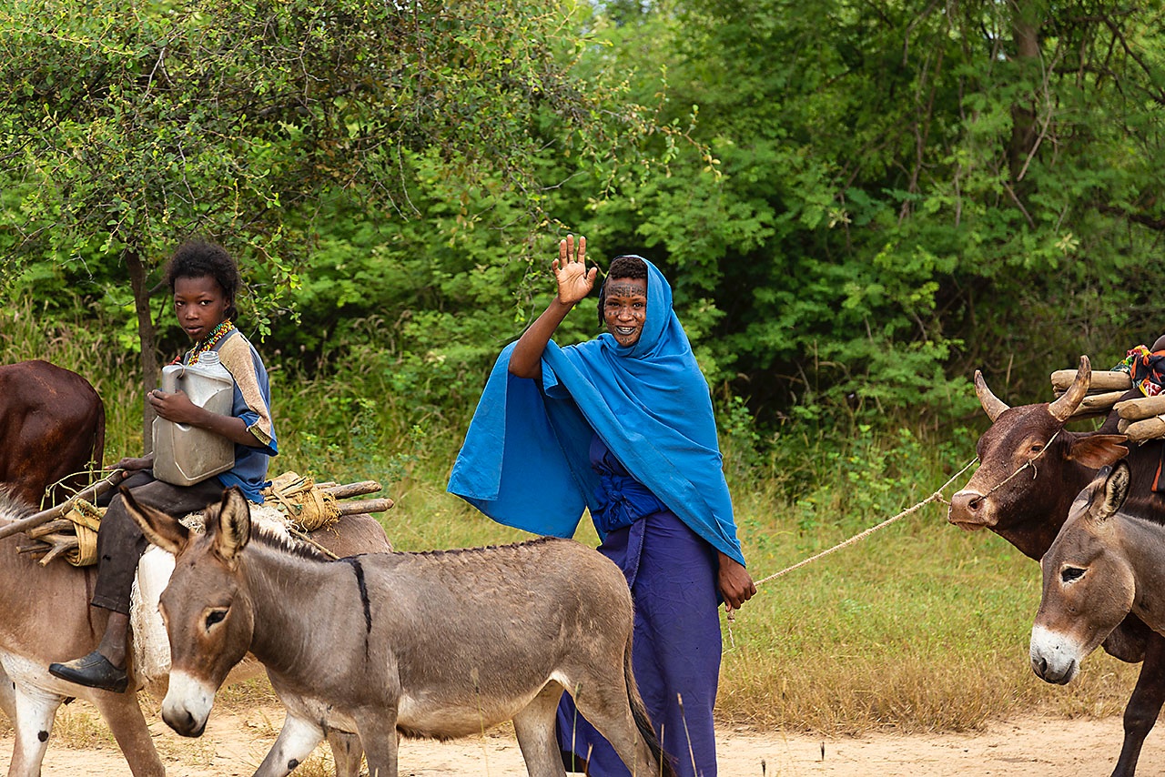 • After the Gerewol festival a Wodaabe (Bororo) woman waves goodbye as her family is on the move again