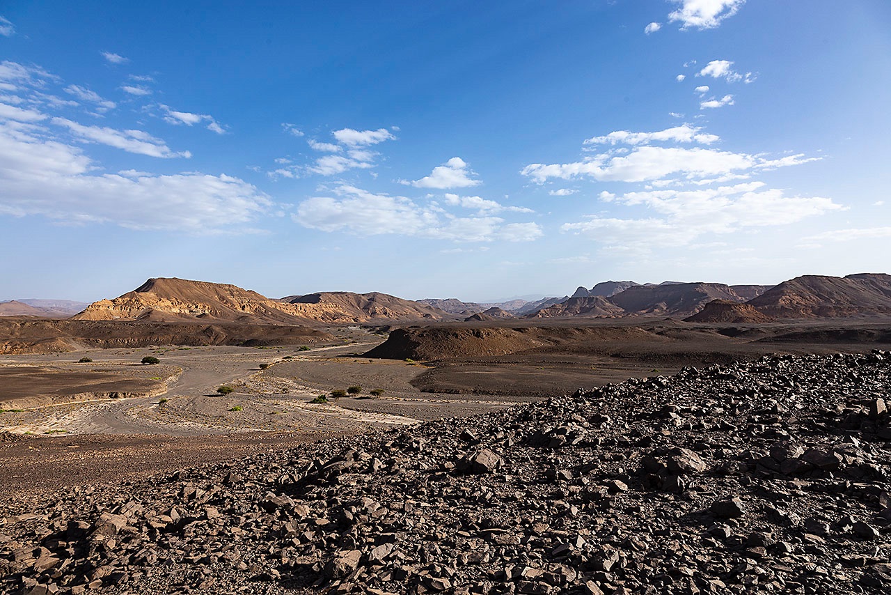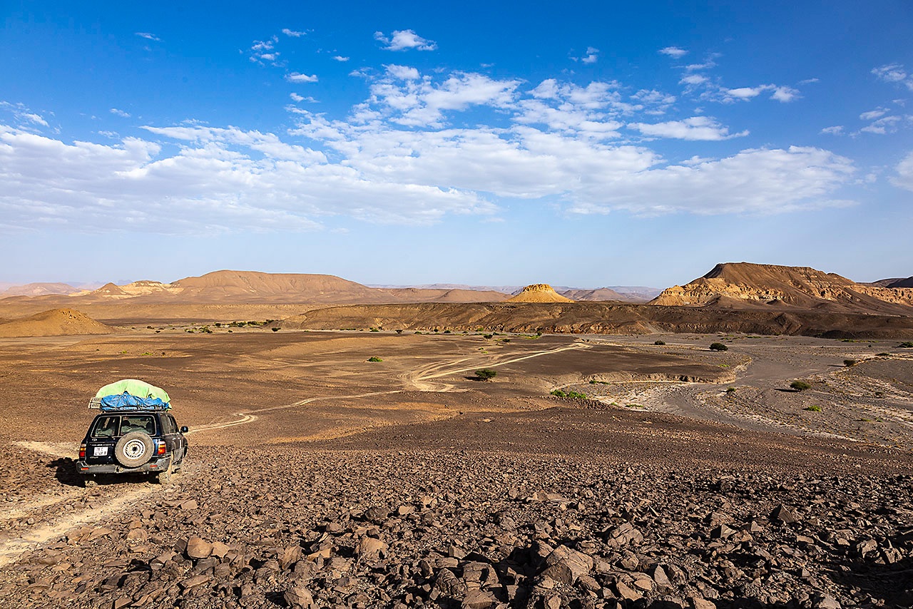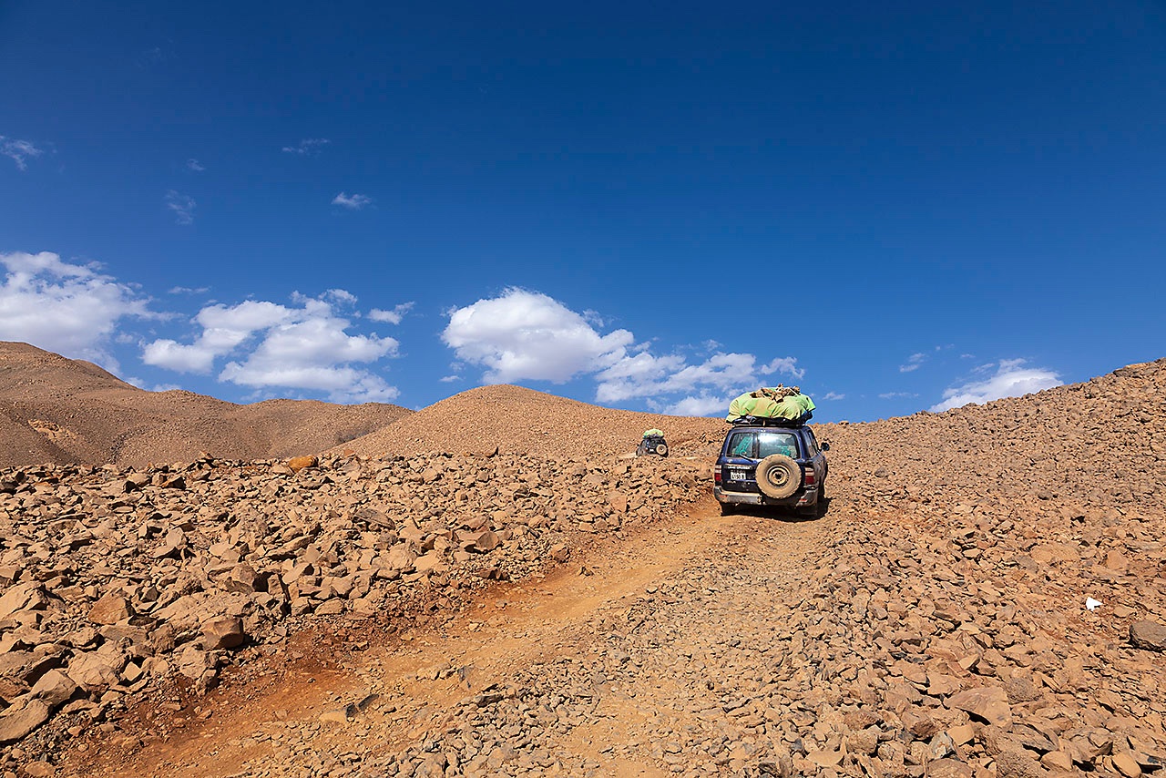 • Driving through barren, but grandiose landscape on a appallingly bad road, Tibesti region