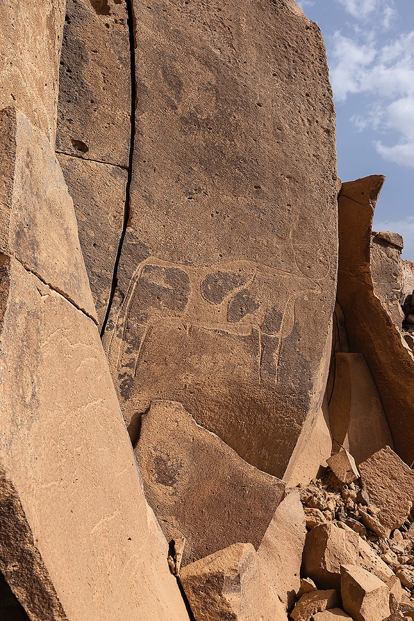 • Cattle and camel engravings at Gonoa rock art site, near Bardaï, Tibesti region