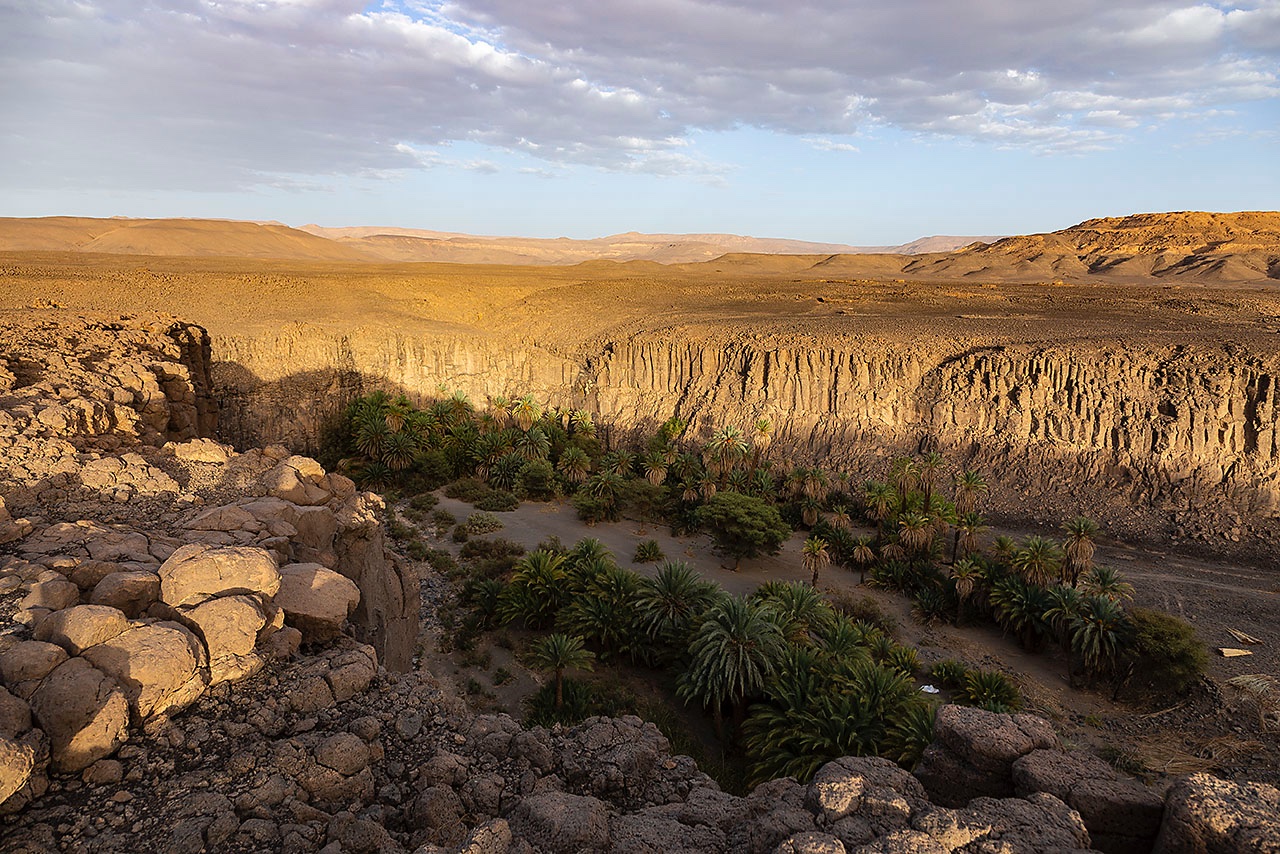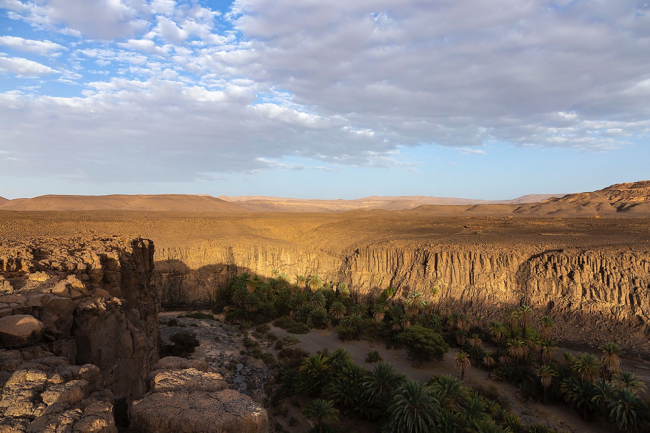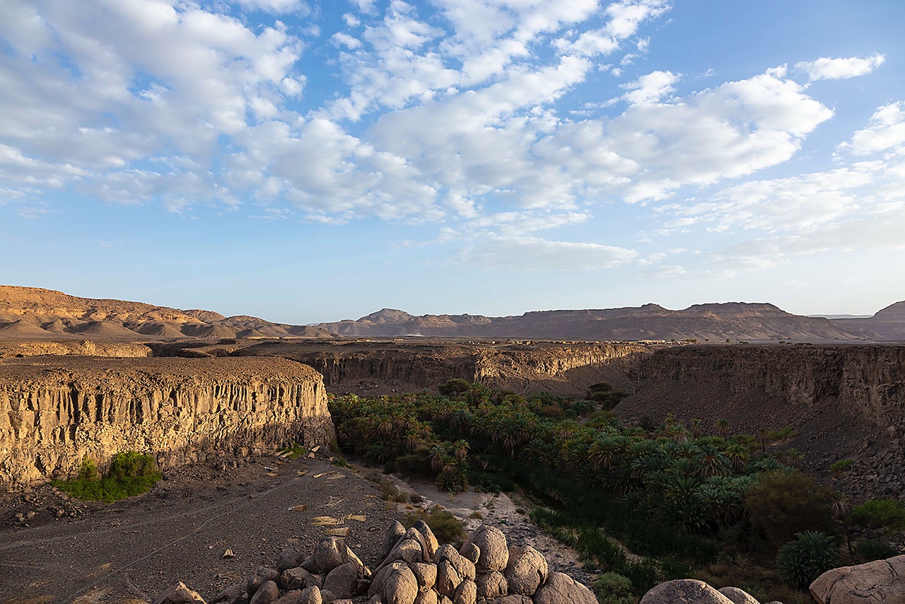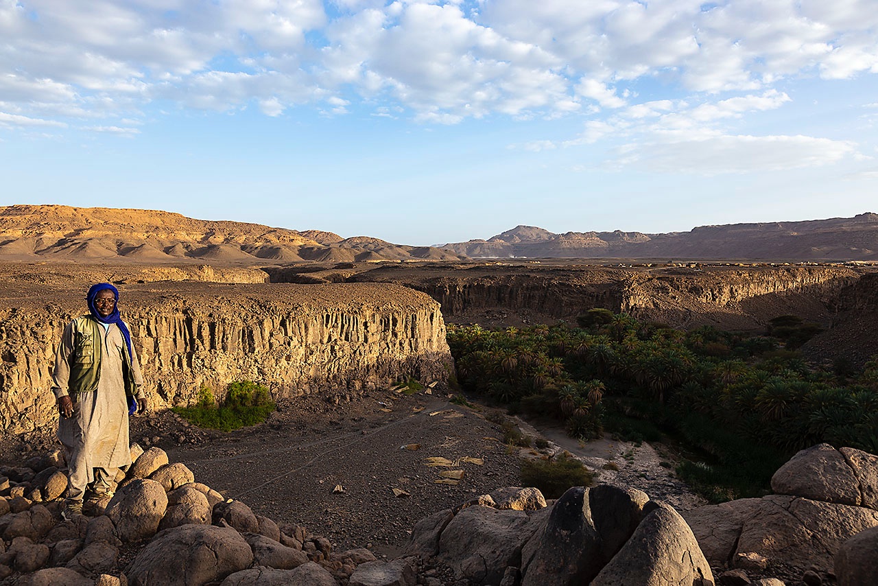 • Overlooking the oasis of Yebbi Souma at sunset, Tibesti region