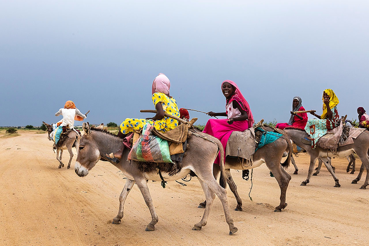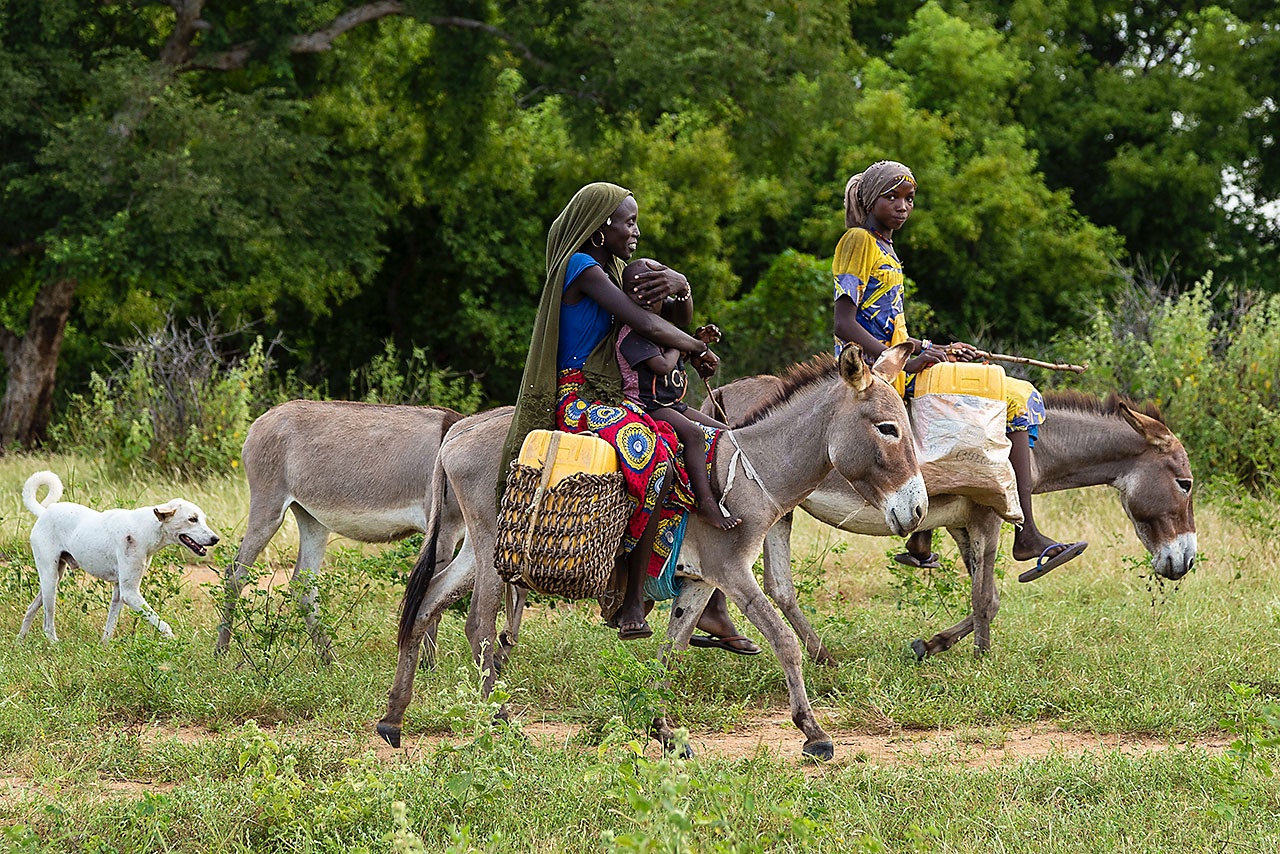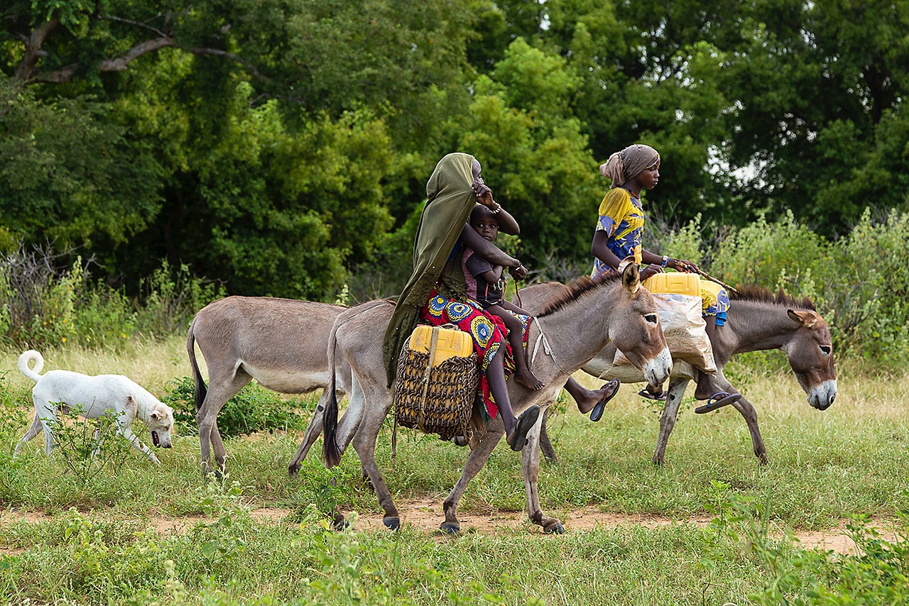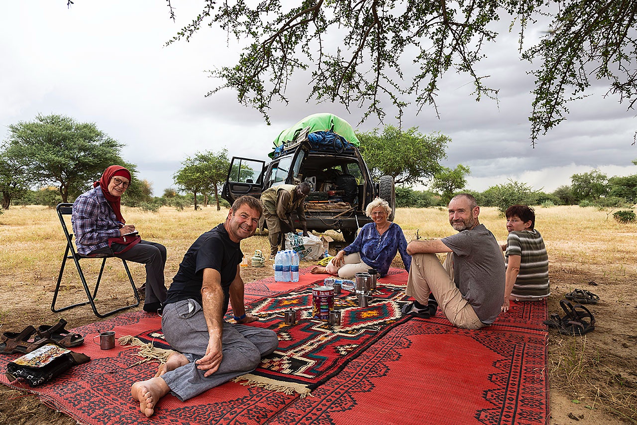 • Lunch time in the shadow of a tree. From left: Halima, Johann, Omar, Martina, Michael and Tatjana