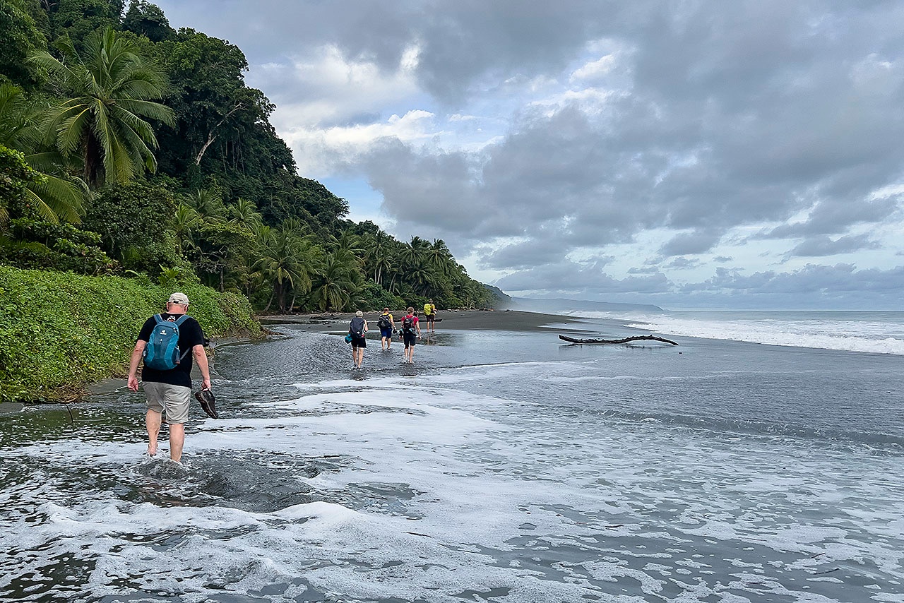 • Hiking group walking on the beach, Corcovado National Park, Osa Peninsula, Puntarenas Province