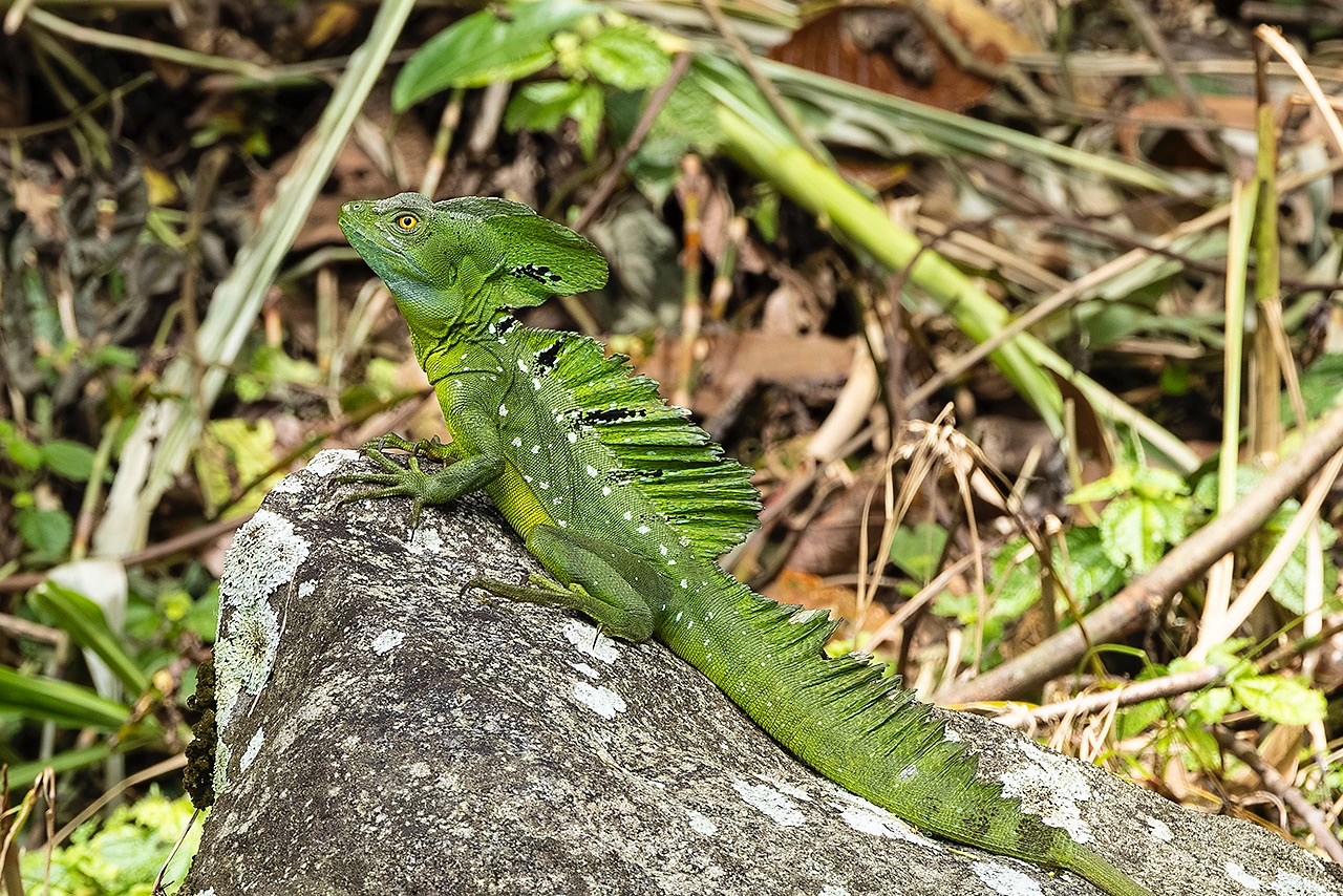 • Male Plumed Basilisk (Basiliscus plumifrons), or Green Basilisk, Guayabo archaeological site near Turrialba, Cartago Province