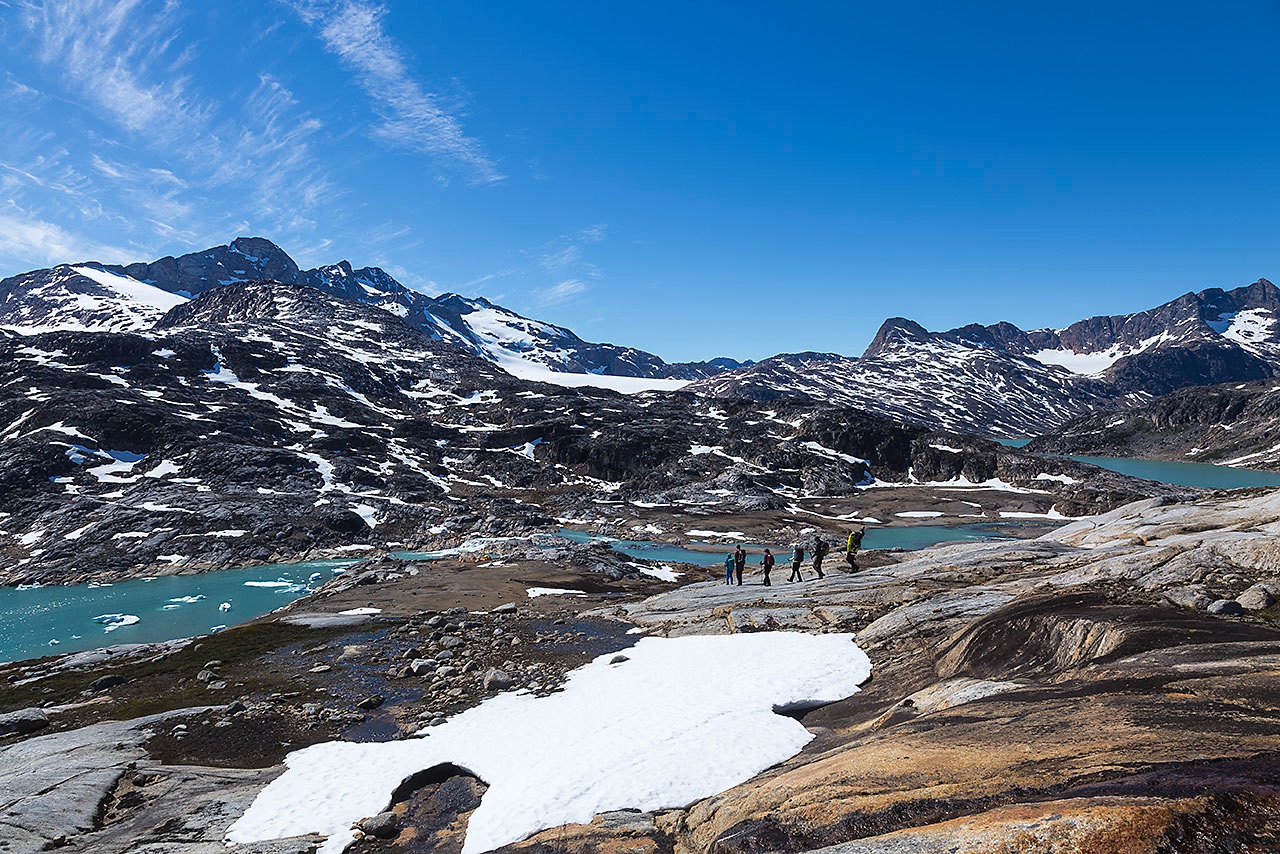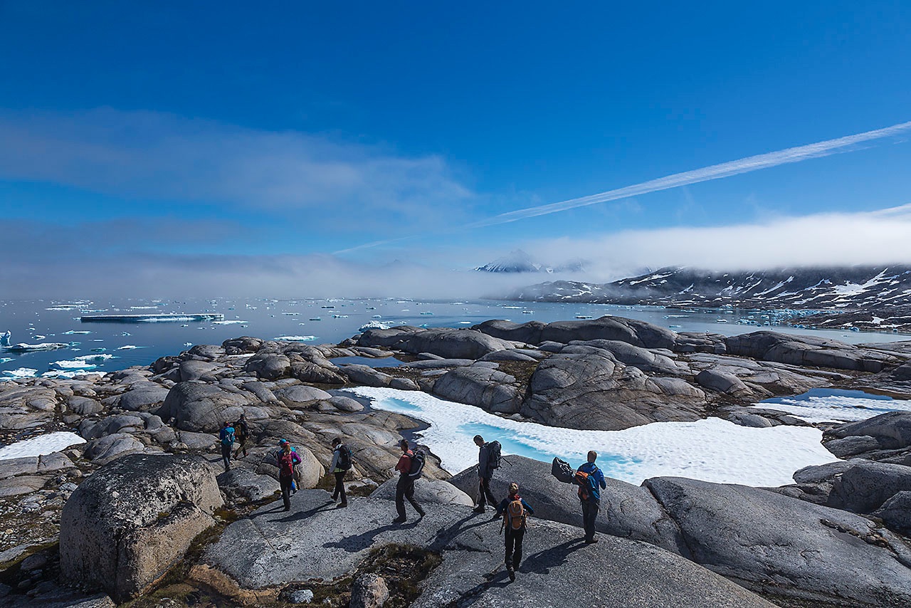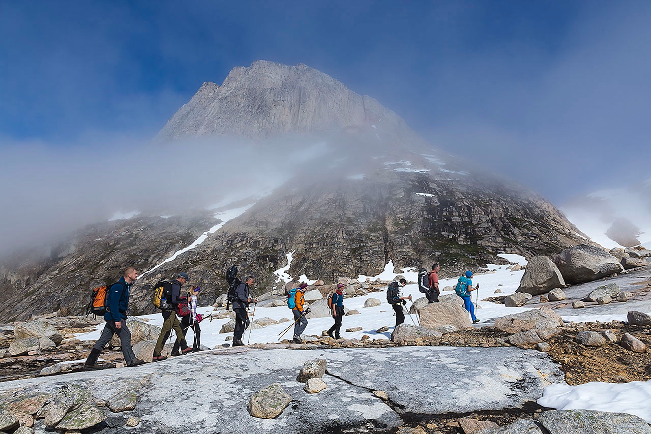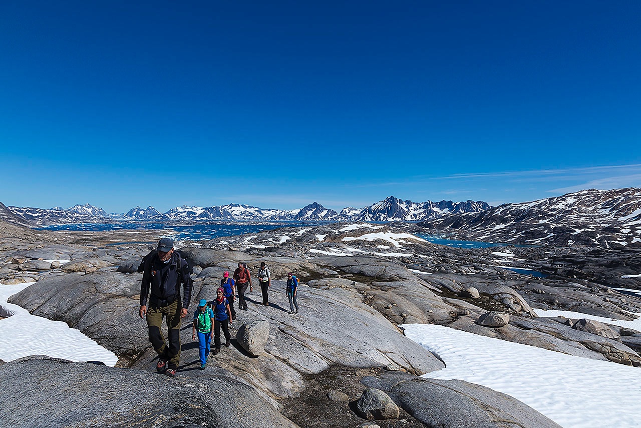 • Group hiking in the wilderness, Ammassalik Island