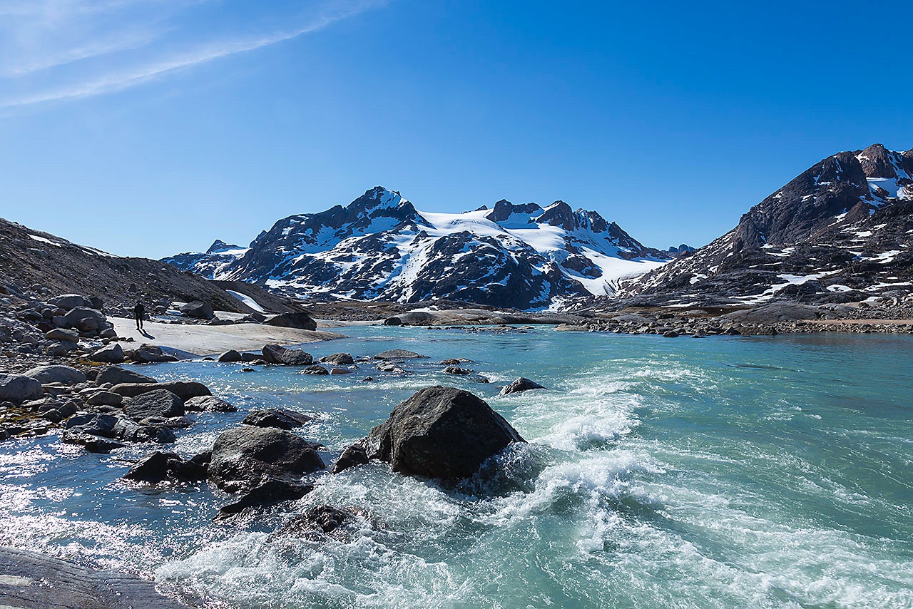 • Melting water near Sangmileq Fjord campsite, Ammassalik Island