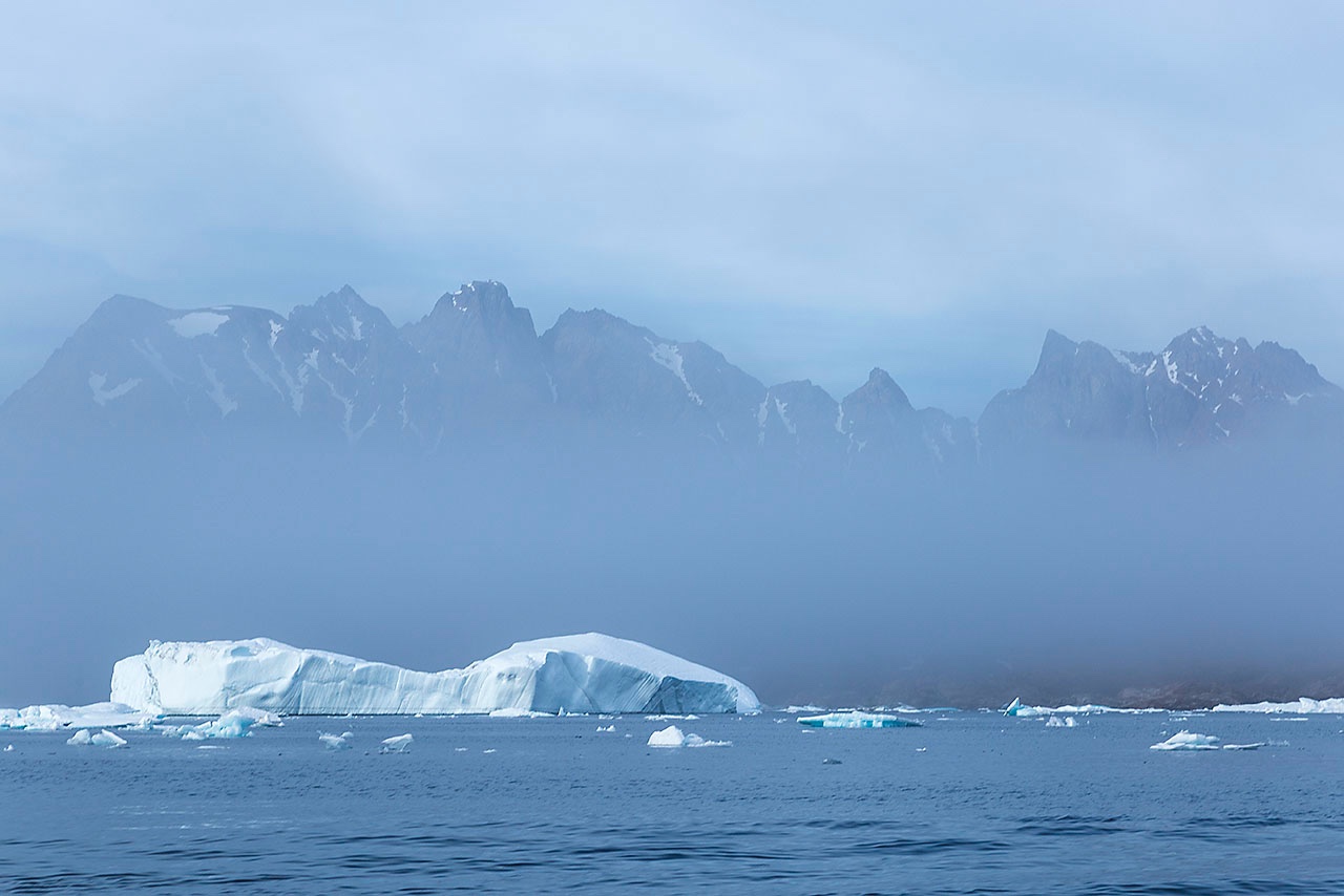 • Mountains in the mist, Ammassalik Fjord