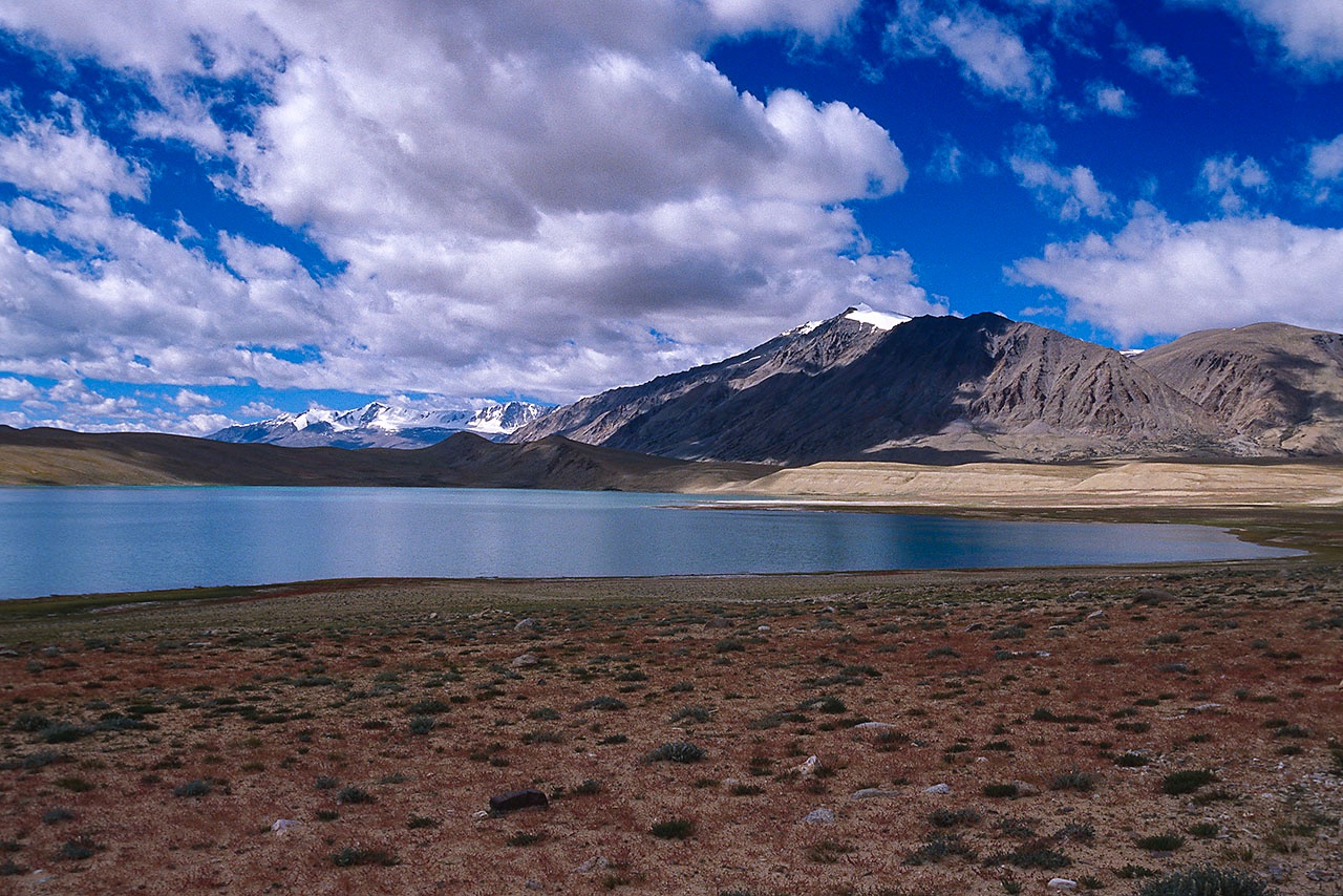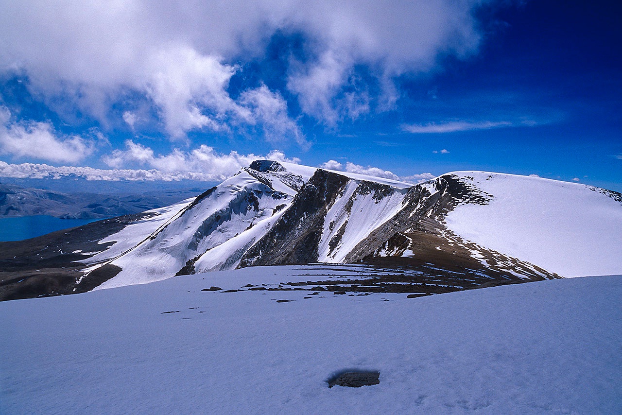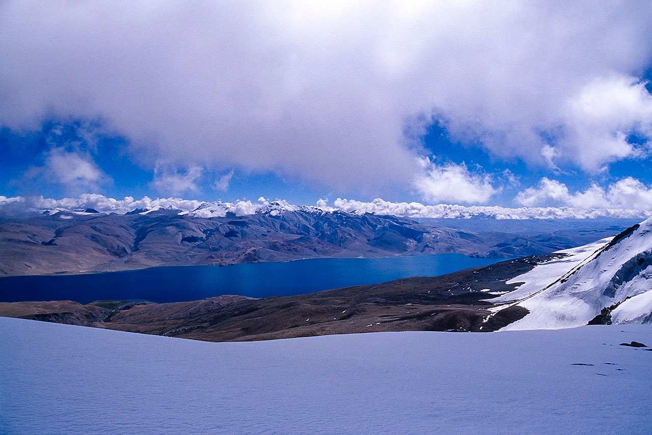 • Tso Moriri lake, seen from Mentok Peak Basecamp, 5400m, Rupshu region, Ladakh