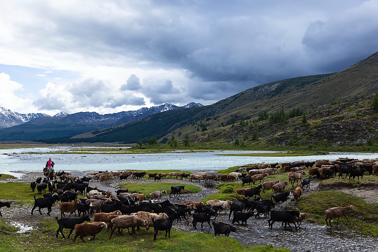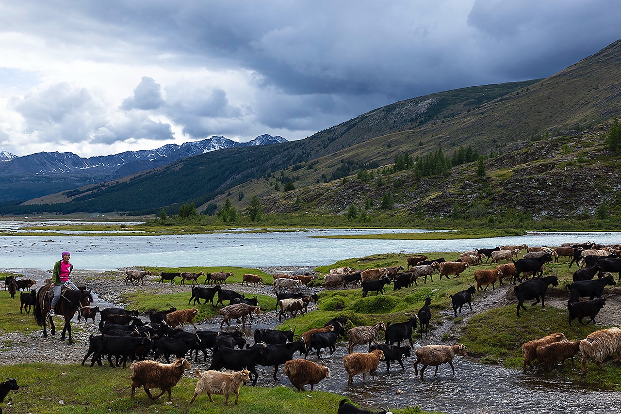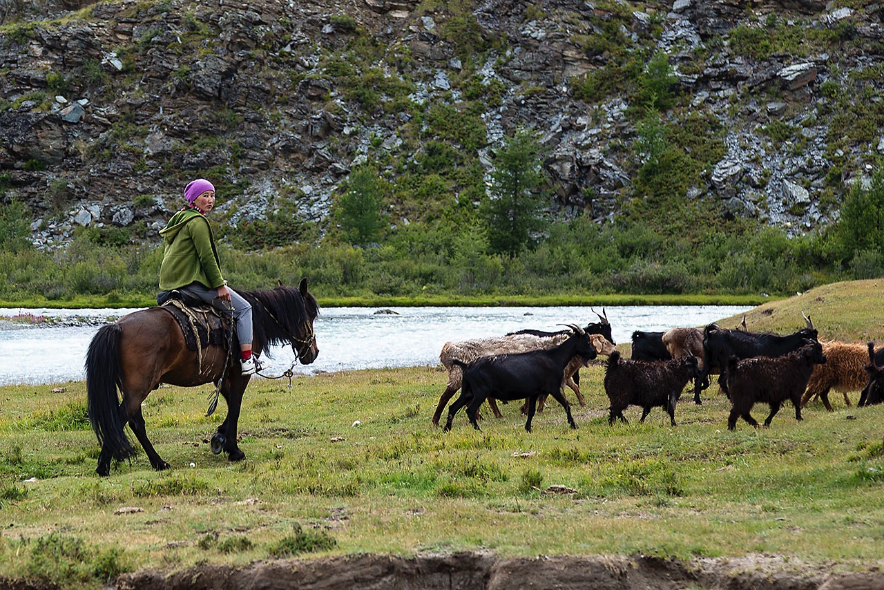 • Nomad woman herding goats, Tavan Bogd National Park, Altai Mountains, Western Mongolia
