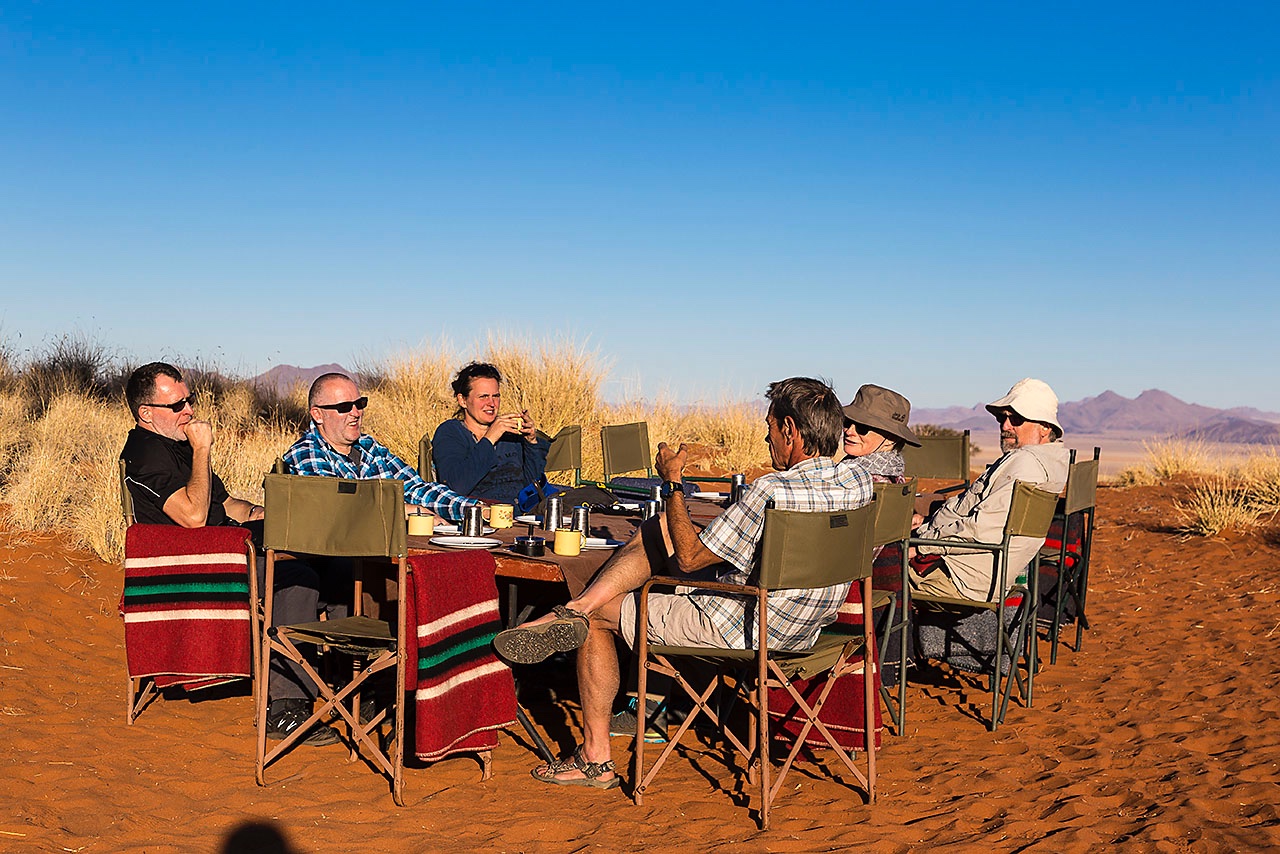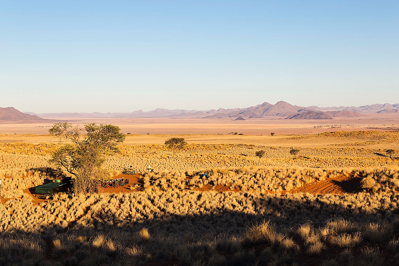 • Open air campsite at Schafberg Camp on Tok Tokkie Trail, NamibRand dunes, NamibRand Nature Reserve, Namib Desert