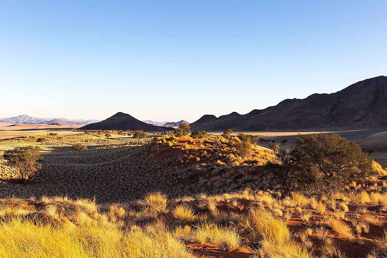 • The red dunes of NamibRand at sunset, NamibRand Nature Reserve, Namib Desert