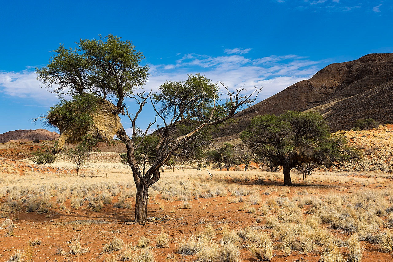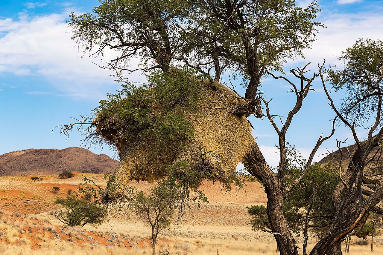 • A large social weaver bird nest growing in a acacia tree, NamibRand Nature Reserve, Namib Desert