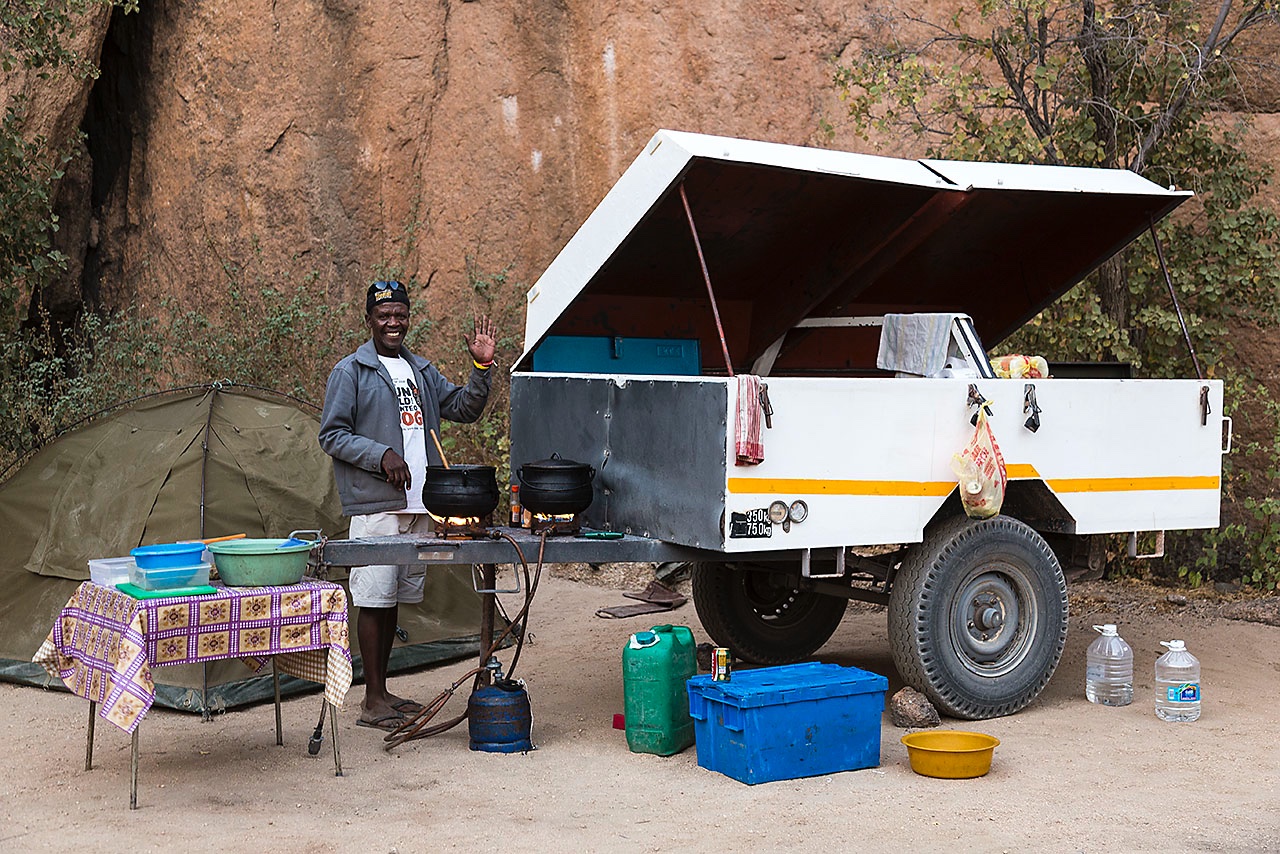 • Preparing dinner at campsite, Spitzkoppe, Erongo region