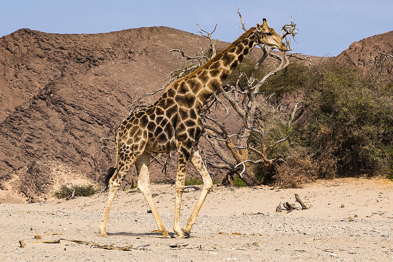 • Angolan Giraffe (Giraffa giraffa angolensis), Hoanib riverbed, Damaraland