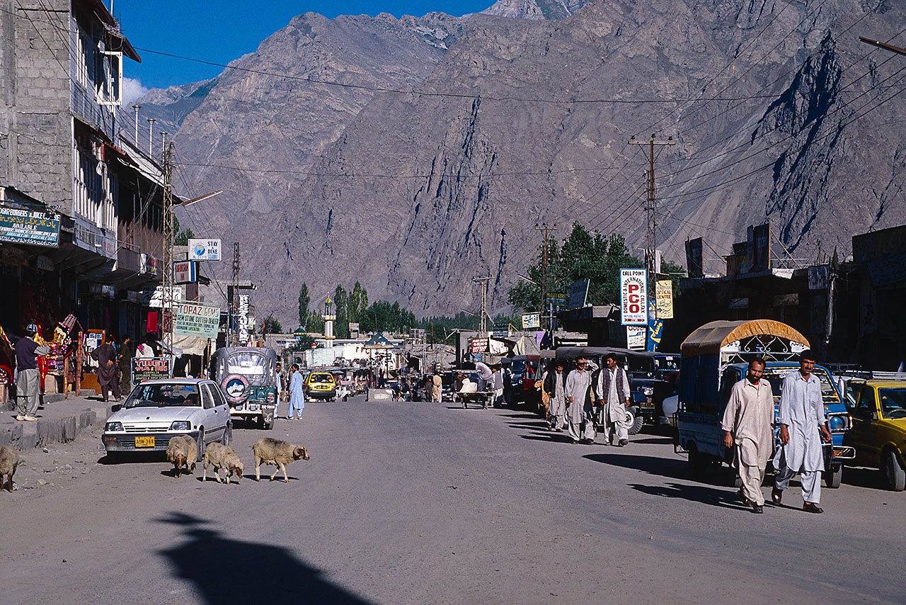 • Main street of Skardu, administrative centre and largest town of Gilgit-Baltistan, Karakoram Mountains