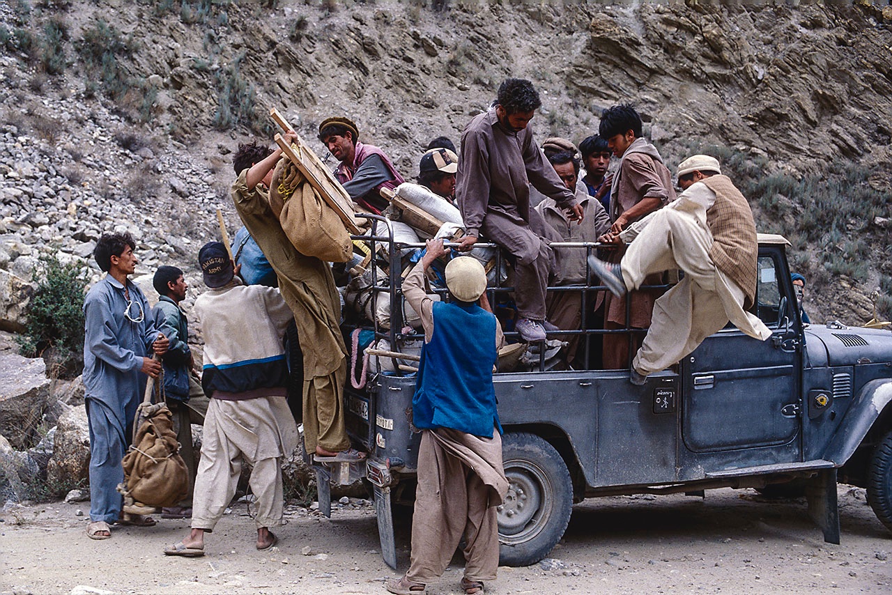 • Crammed 4WD on the Askole road, Karakoram Mountains