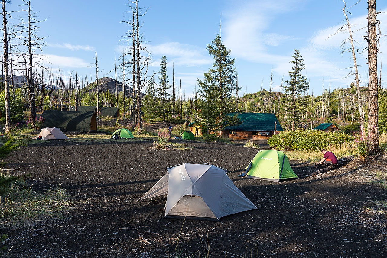 • Campsite in the 'Dead Forest', our base for the Tolbachik volcanoe ascent and a week-long trekking tour in the Klyuchevskoy Nature Park