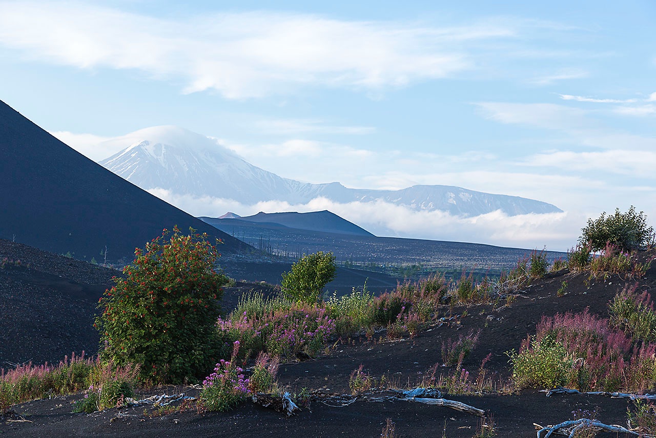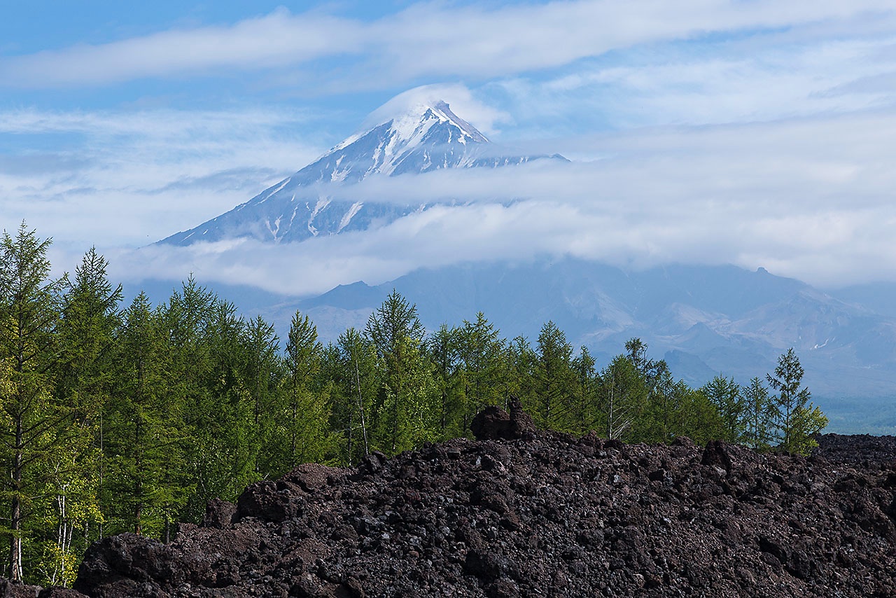 • Tolbachik volcano in clouds, seen from the 'Dead Forest', Klyuchevskoy Nature Park