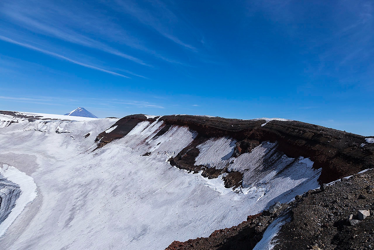 • Looking across Plosky Tolbachik crater to Ostry Tolbachik peak, 3682m, Klyuchevskoy Nature Park