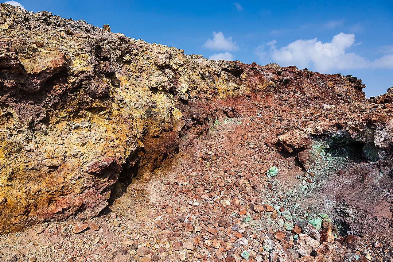 • Colorful top of a volcanic cone near Tolbachik volcano, Klyuchevskoy Nature Park