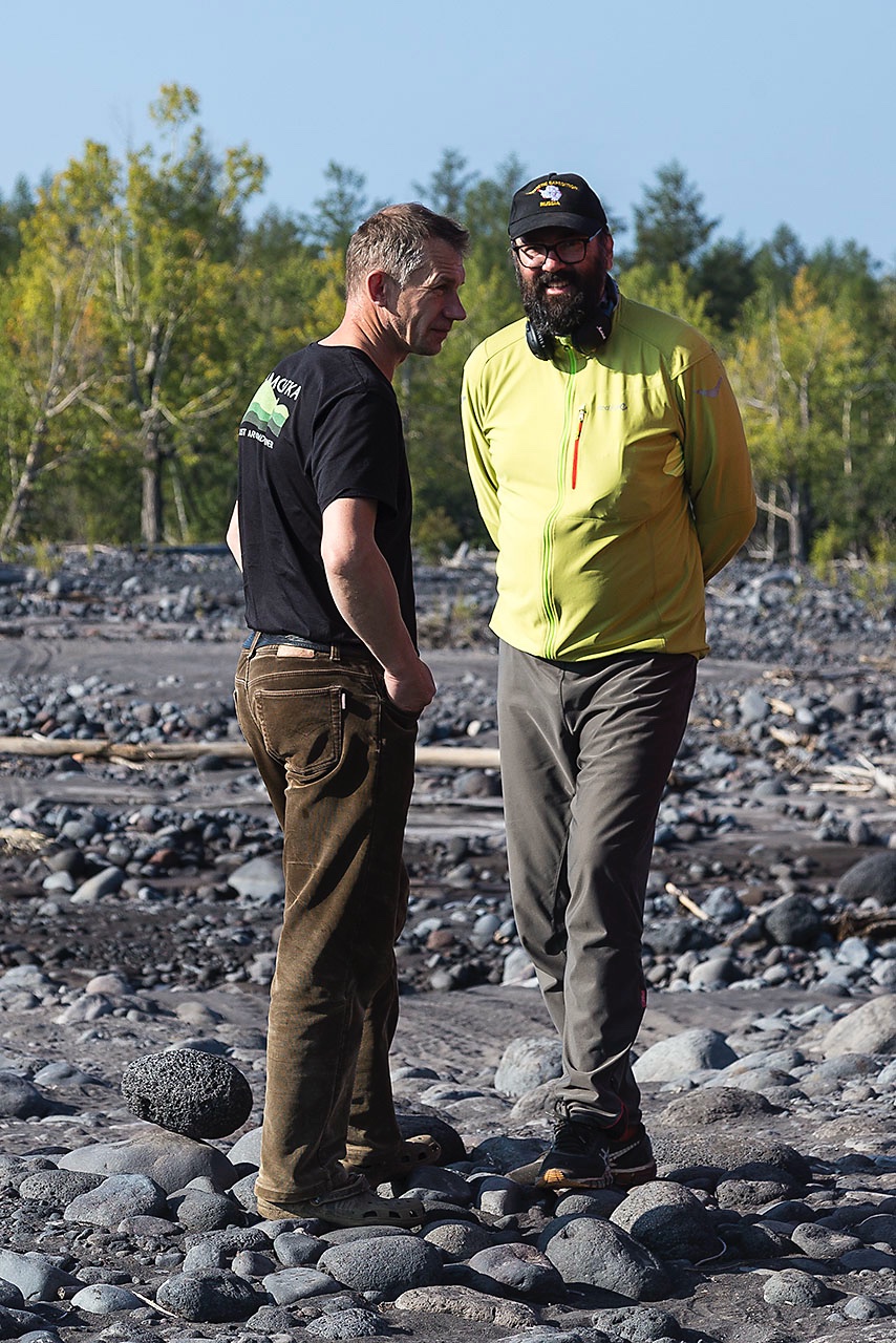 • Our tour guides Roma and Igor show a book with images of Tolbachik's most recent eruption