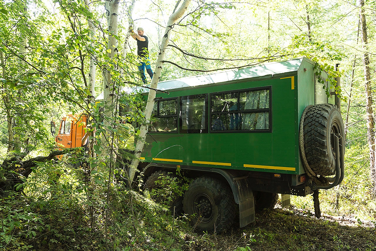 • Guide Igor watches as the Kamaz truck manoeuvres its way along the forest road