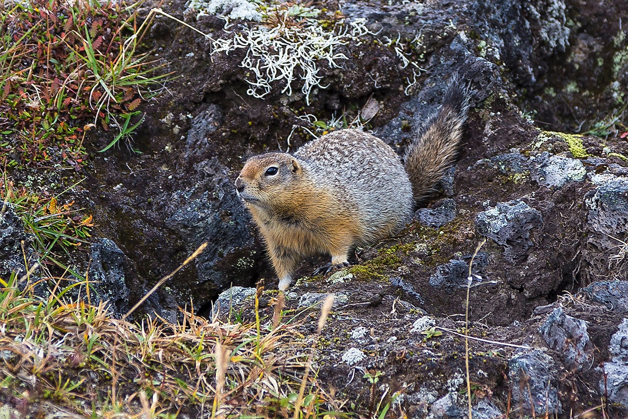 • Black-capped Marmot (Marmota camtschatica) at campsite, around Tolbachik trek, Klyuchevskoy Nature Park