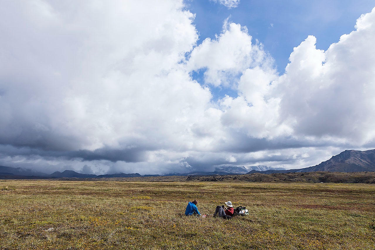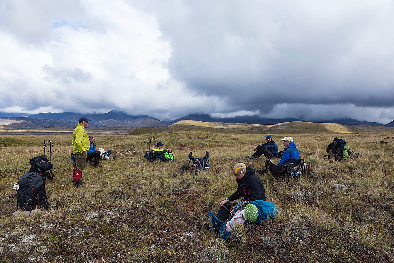 • Trekking group taking a rest, around Tolbachik trek, Klyuchevskoy Nature Park