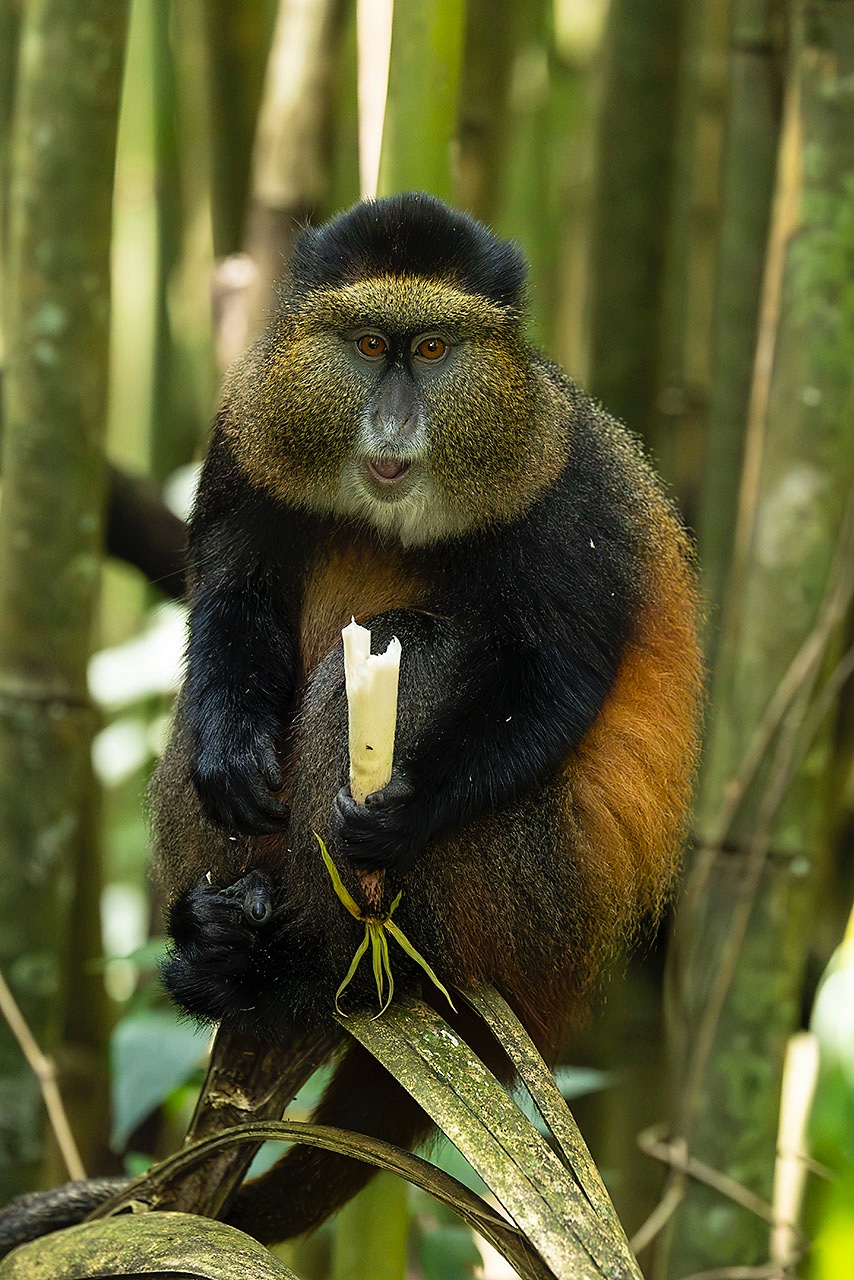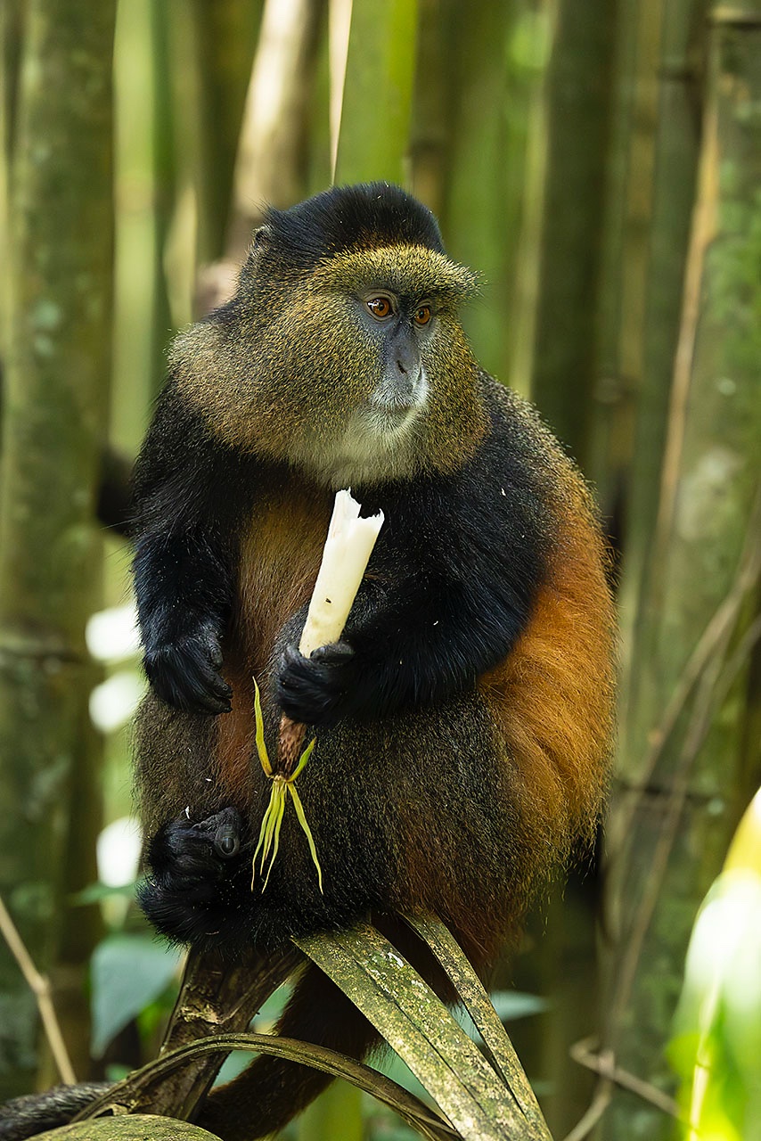 • Golden Monkey (Cercopithecus mitis kandti) eating bamboo, Mgahinga Gorilla National Park