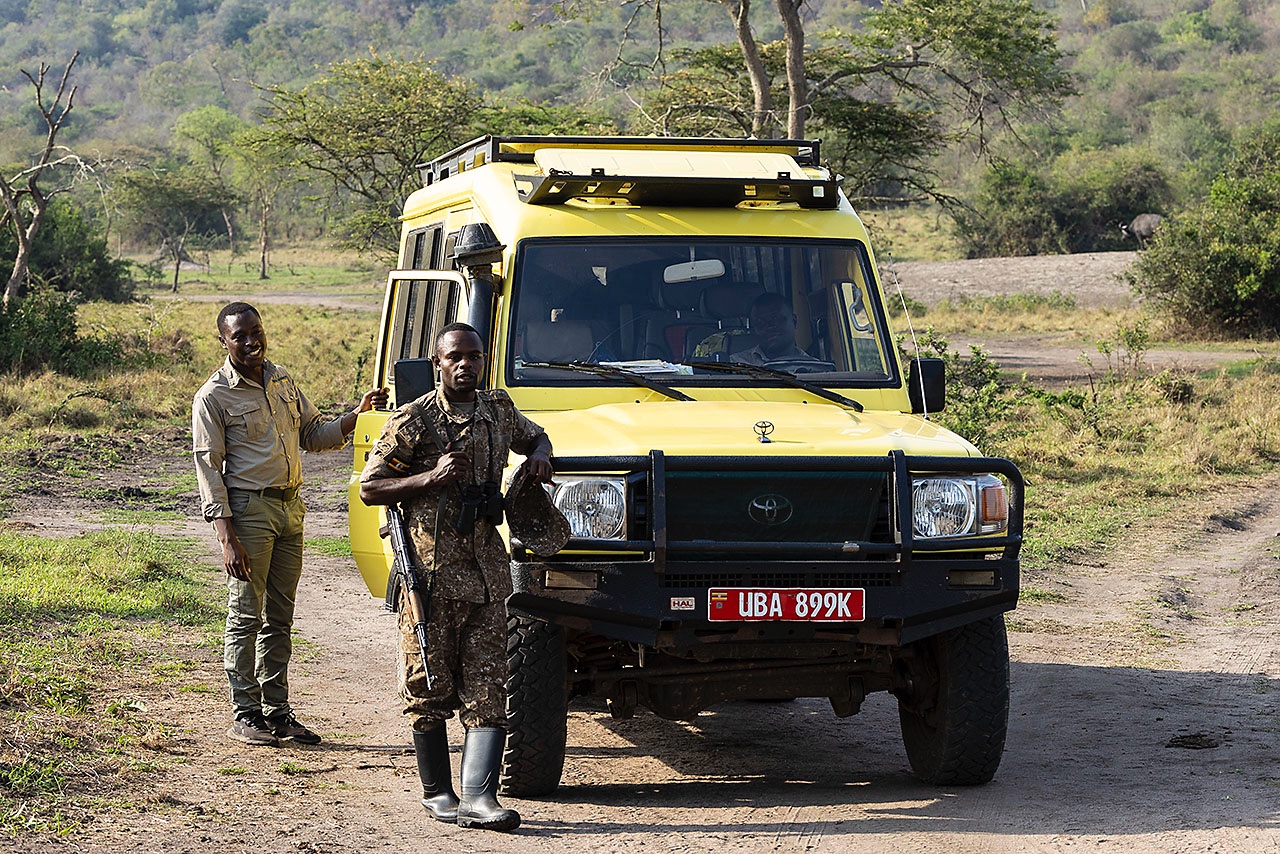 • Local tour guide Essy (left), wildlife guide and driver Engola, Lake Mburo National Park