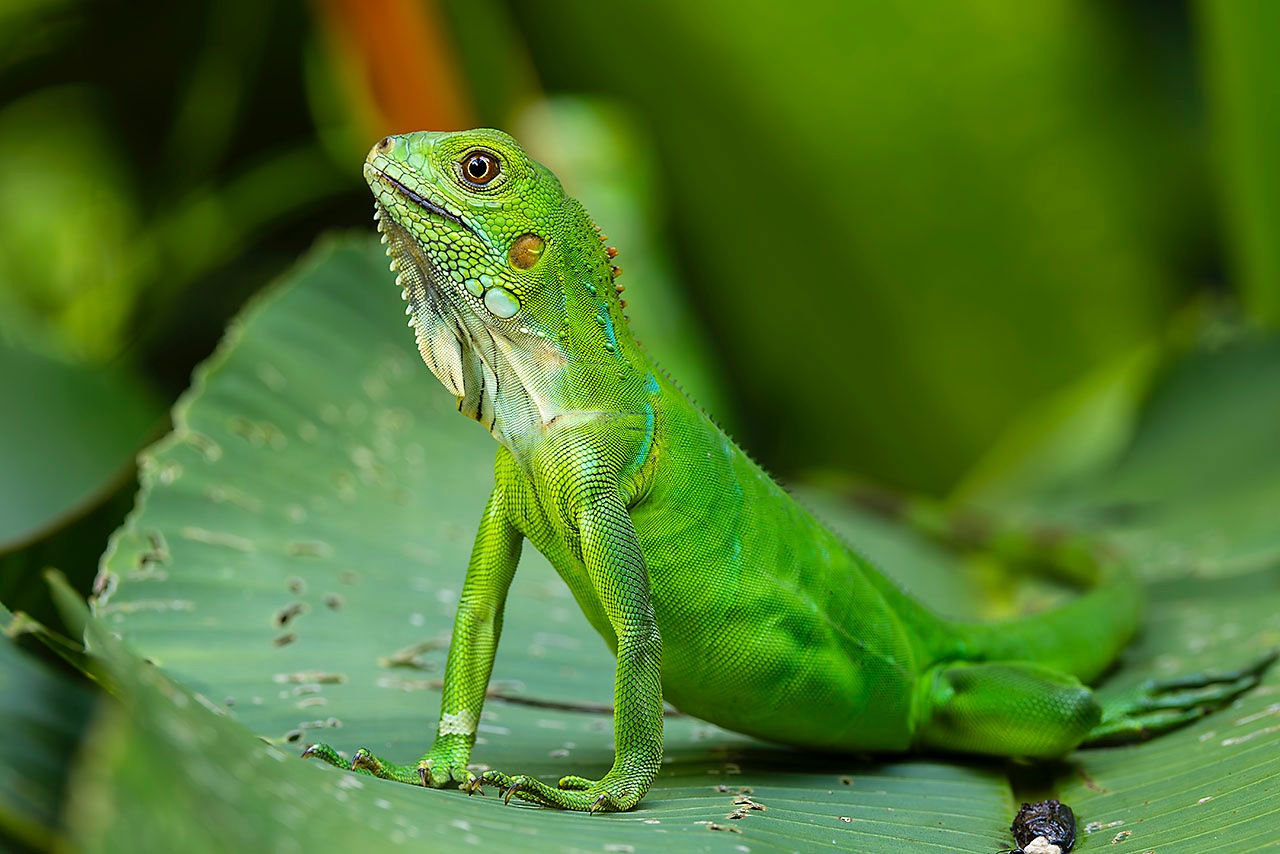 • Bright green juvenile Green Iguana (Iguana iguana), Manuel Antonio National Park, Puntarenas Province